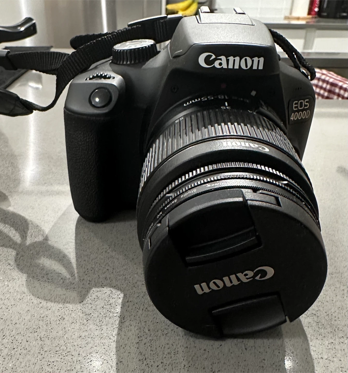 Selling a Canon EOS 4000D camera with an EF-S 18-55mm III lens. It's a 18.0 mega pixel CMOS camera capable of full HD EOS movie recording. Includes battery, charger, and strap. Great for capturing everyday moments!