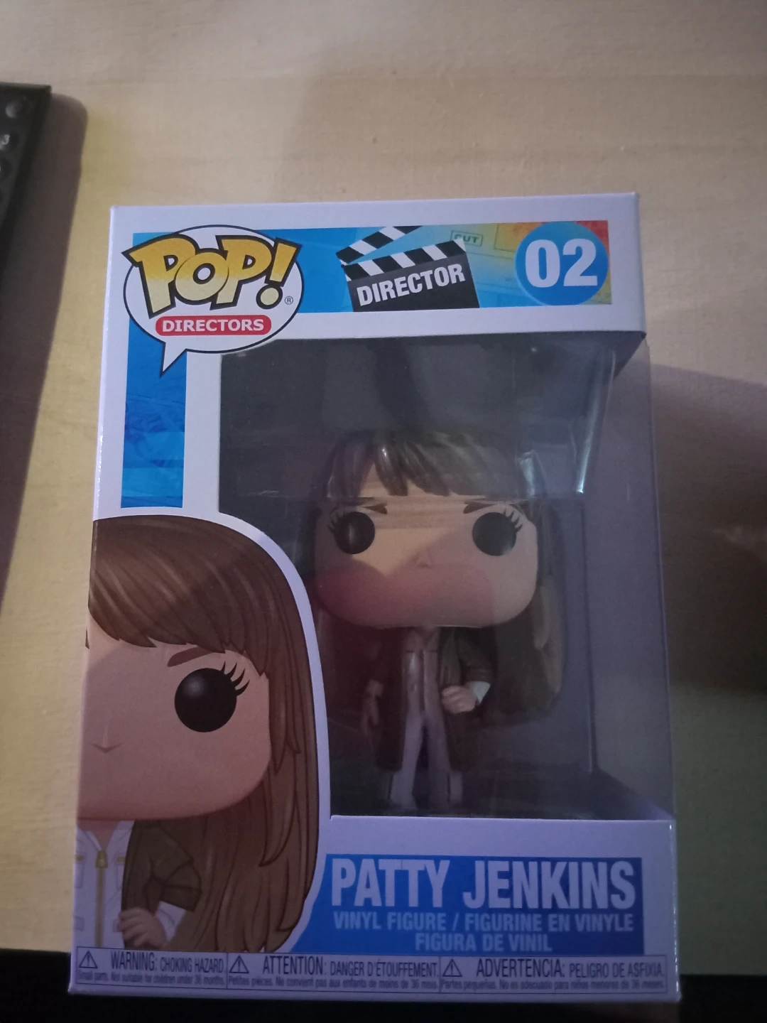 This is a Funko Pop! Directors vinyl figure of Patty Jenkins. It comes in its original packaging. It's part of the Directors series, number 02.