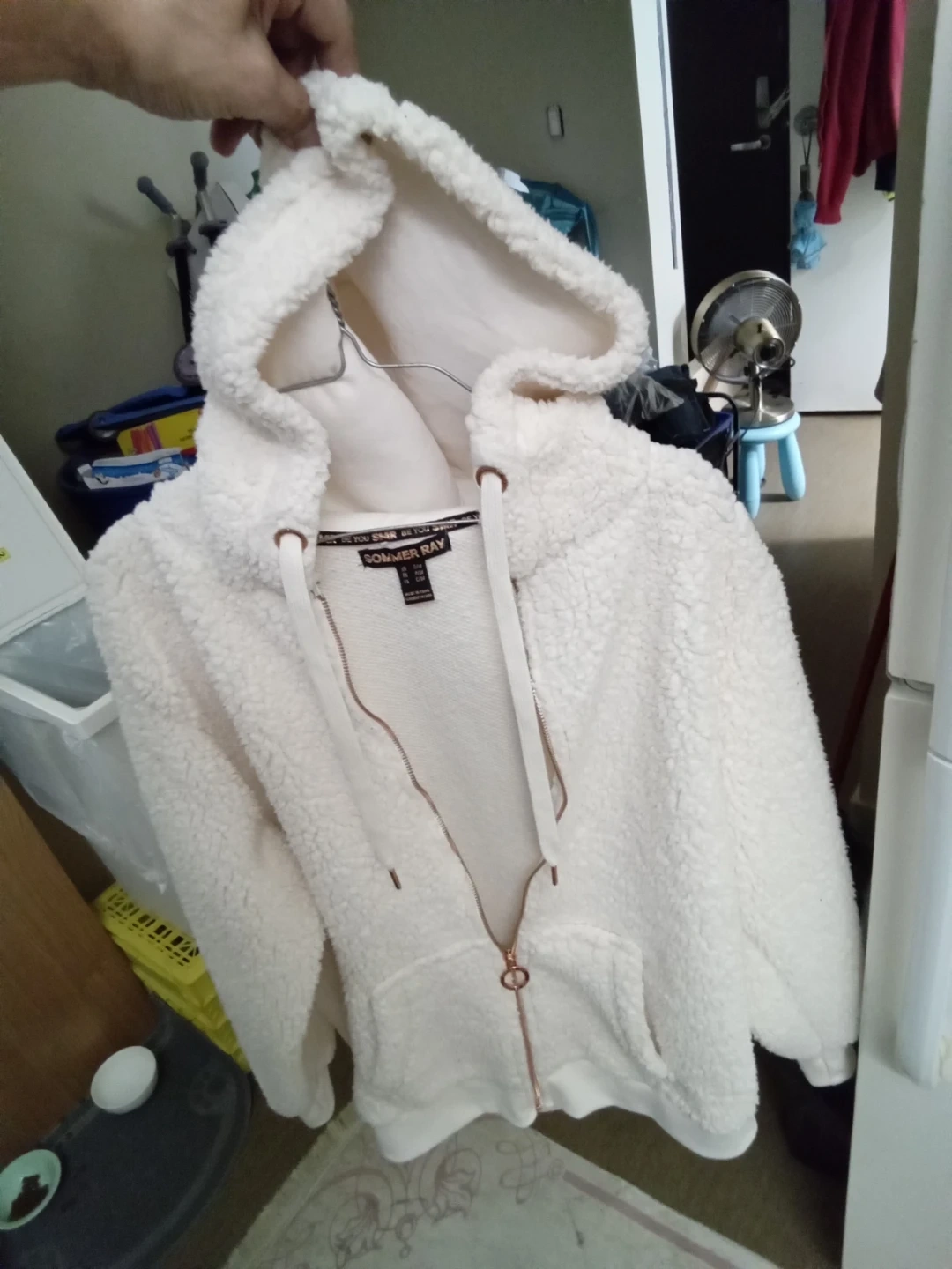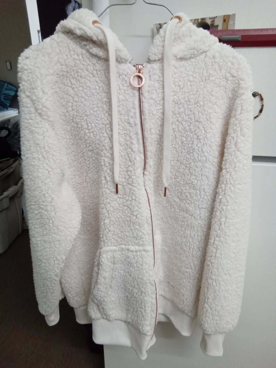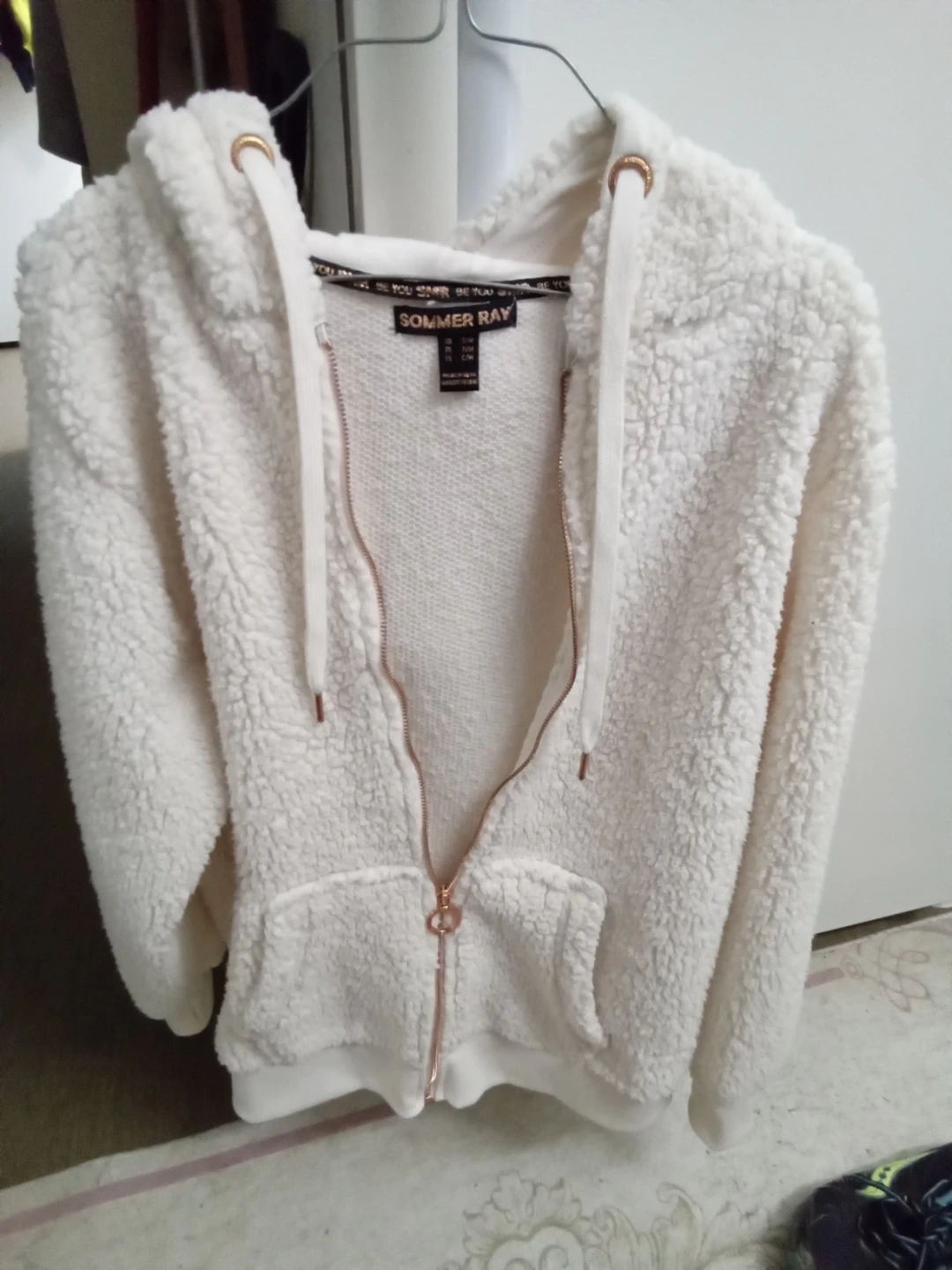 Selling a super cozy Sommer Ray sherpa hoodie in a size small/medium! It's a lovely white colour and features a full zip with rose gold accents. Perfect for chilly days!