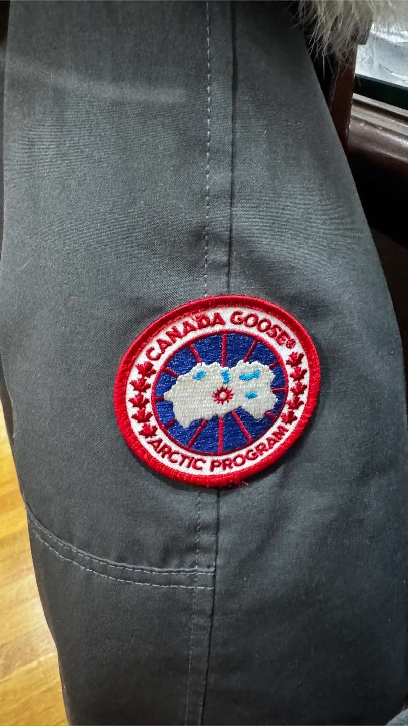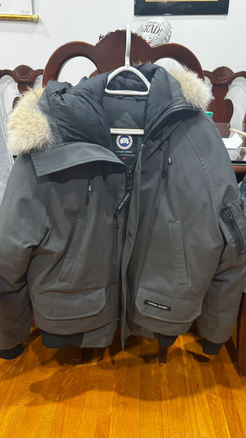Selling a Canada Goose bomber jacket in size medium. It's in great condition and ready to keep you warm this winter! The jacket features the classic Canada Goose Arctic Program logo.