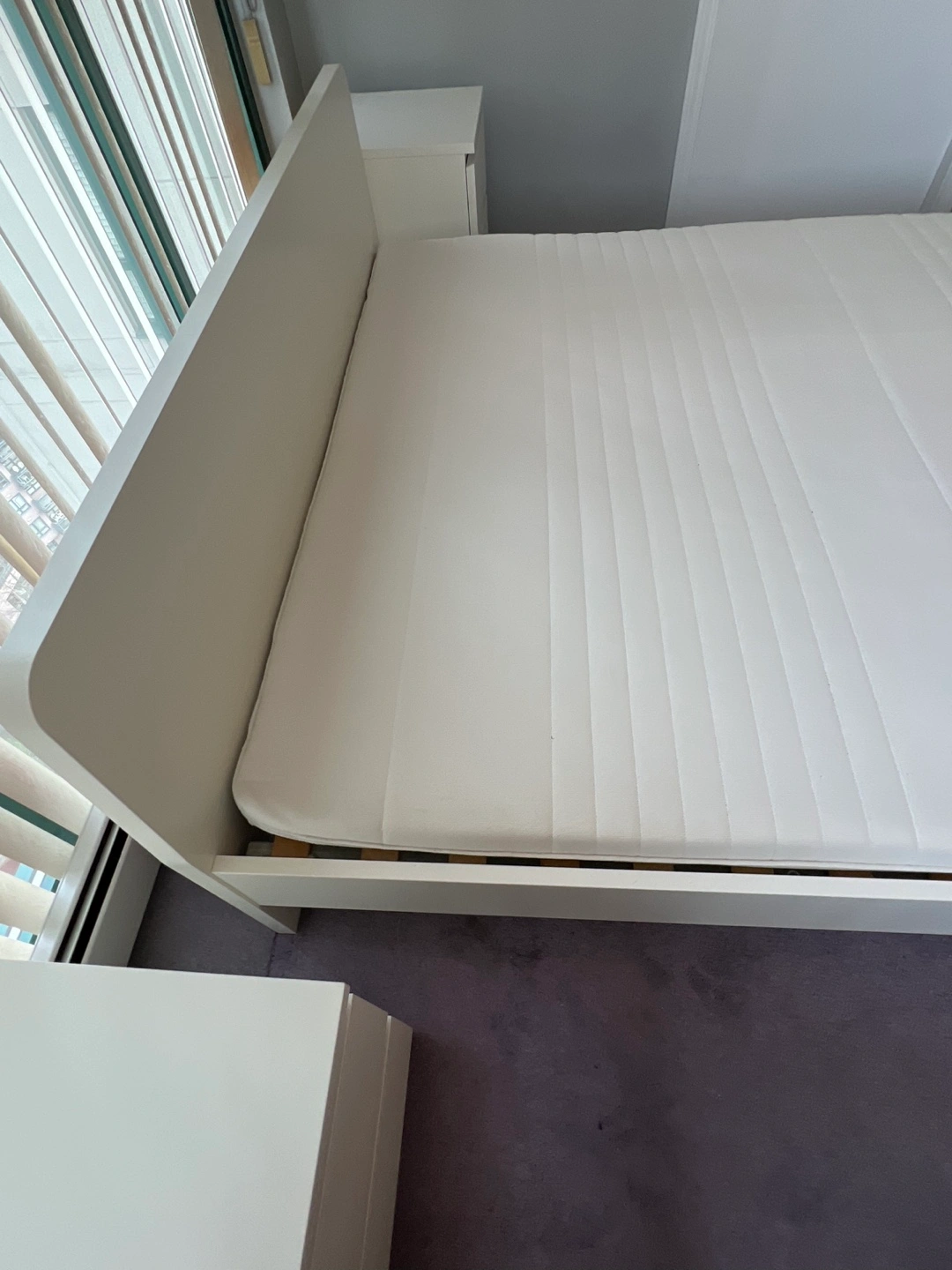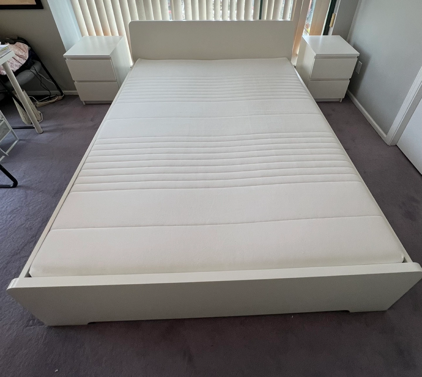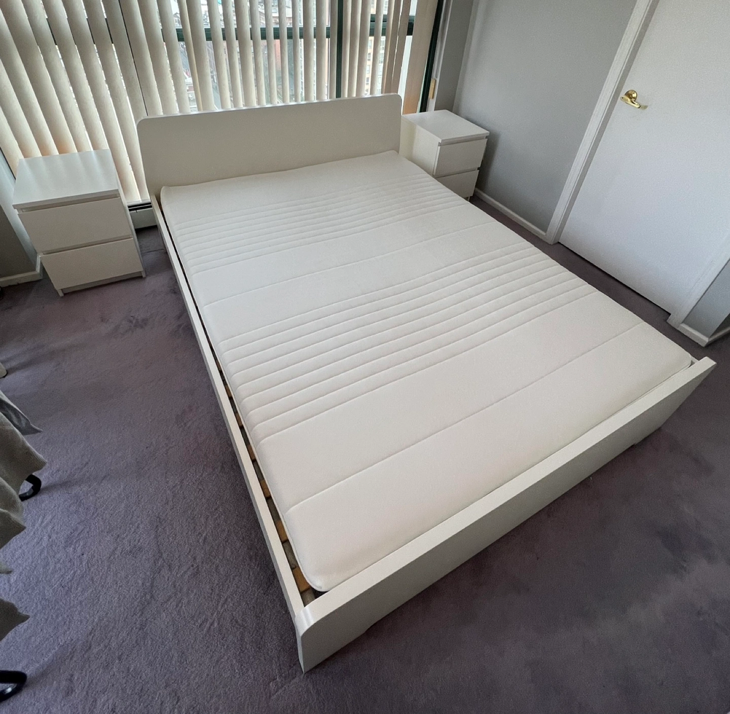 IKEA MALM White Queen Bed Frame with 2 Nightstands
