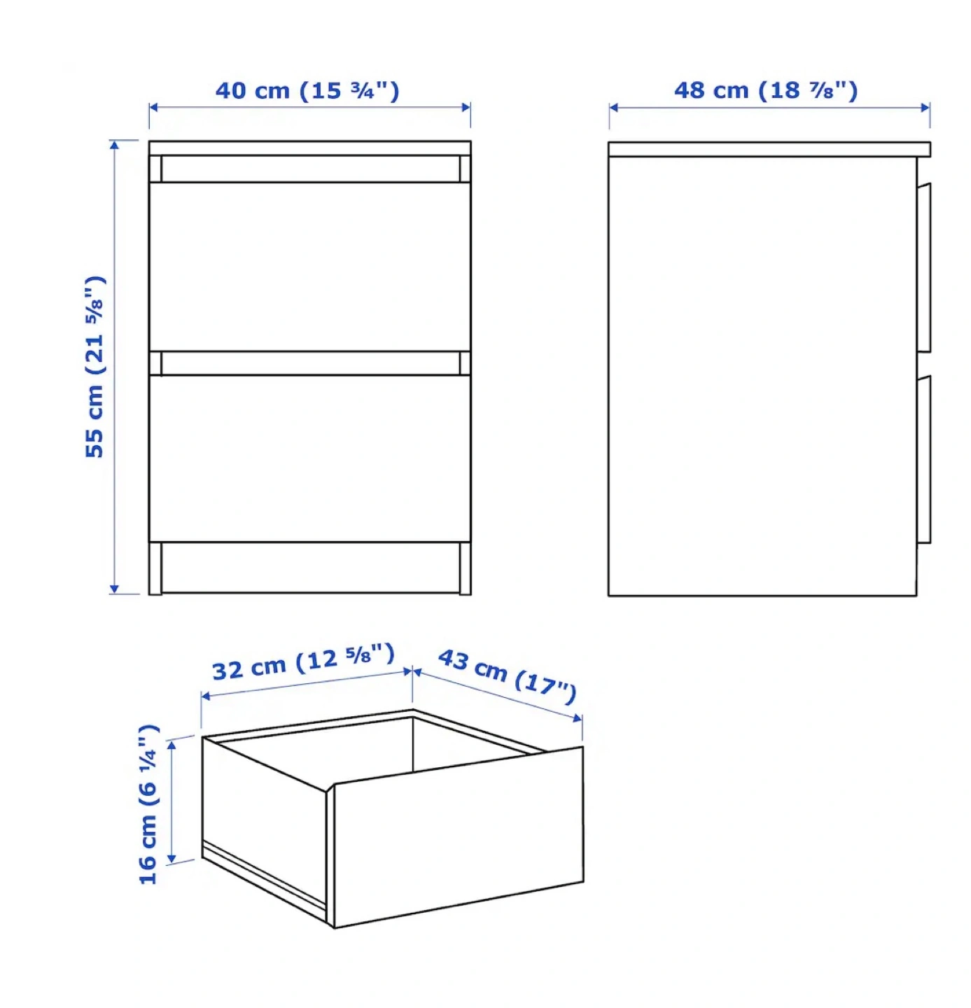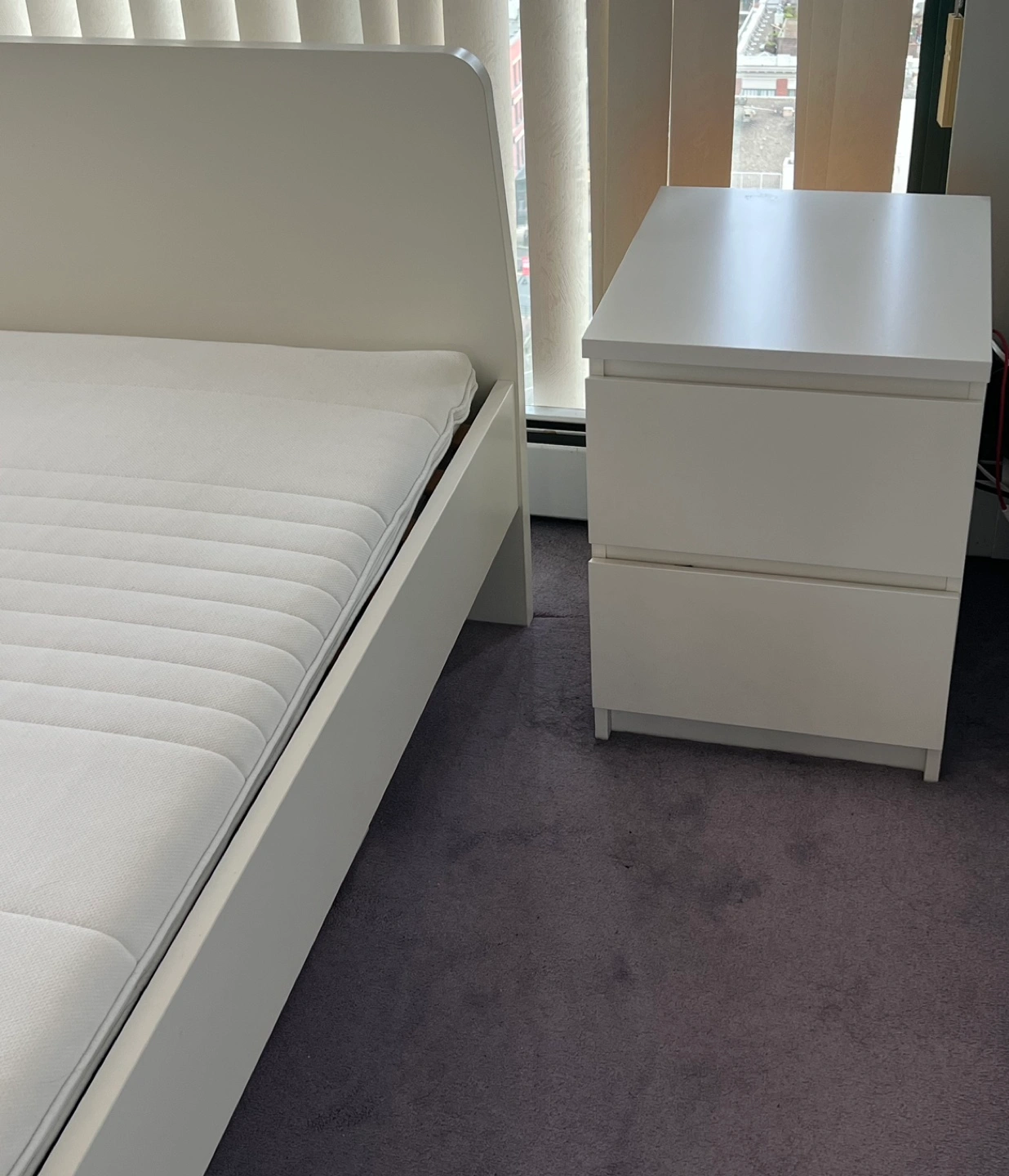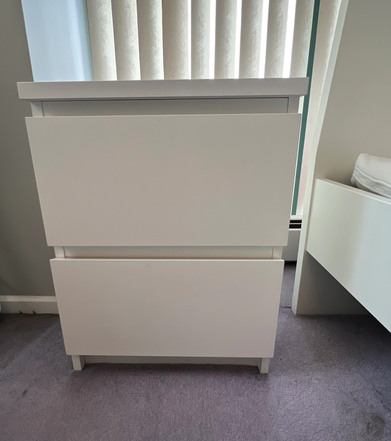 IKEA MALM White Queen Bed Frame with 2 Nightstands