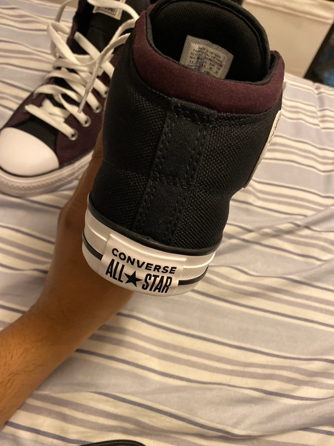 Classic Converse All Star Chuck Taylor mid-top sneakers in a burgundy and black colourway. Featuring a durable canvas and synthetic upper, lace-up closure, and the iconic Chuck Taylor ankle patch. These shoes are built for everyday wear. This shoes for unisex’s Men size 9.5 and Women 11.5