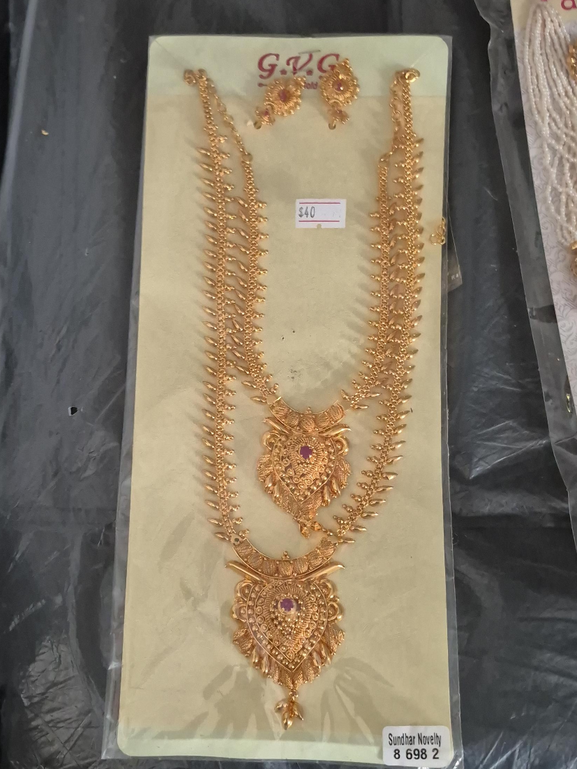 Selling a beautiful G.V.G gold necklace and earring set! It's brand new and comes with the original packaging. The set features intricate detailing and a lovely design. The original price was $40.