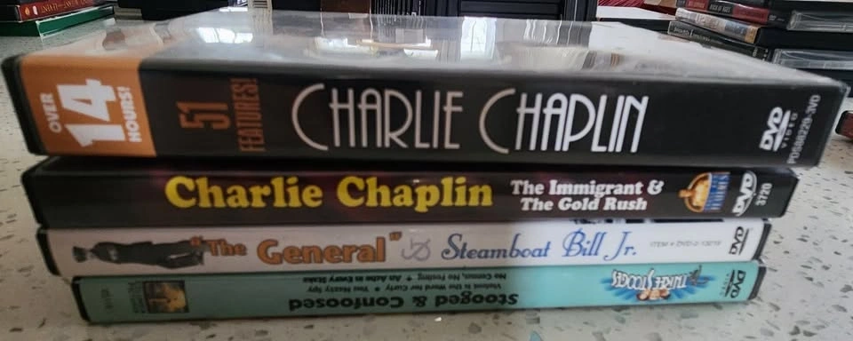 DVDs: Charlie Chaplin, Buster Keaton, Three Stooges