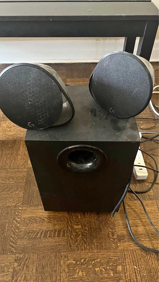 Logitech G560 subwoofer and two speakers. These are NOT WORKING. The issue is that they do not turn on / have no power when the power button is pressed.