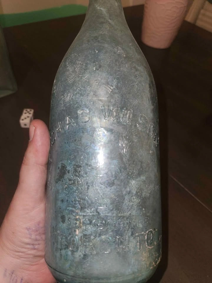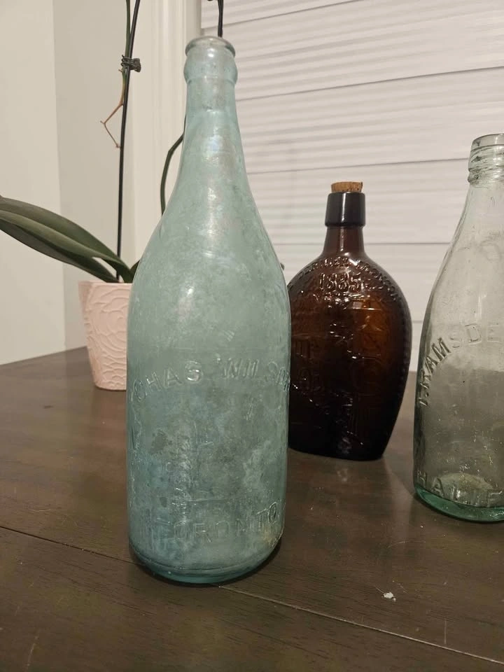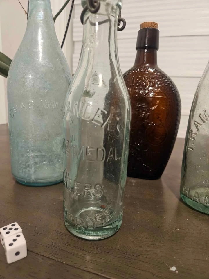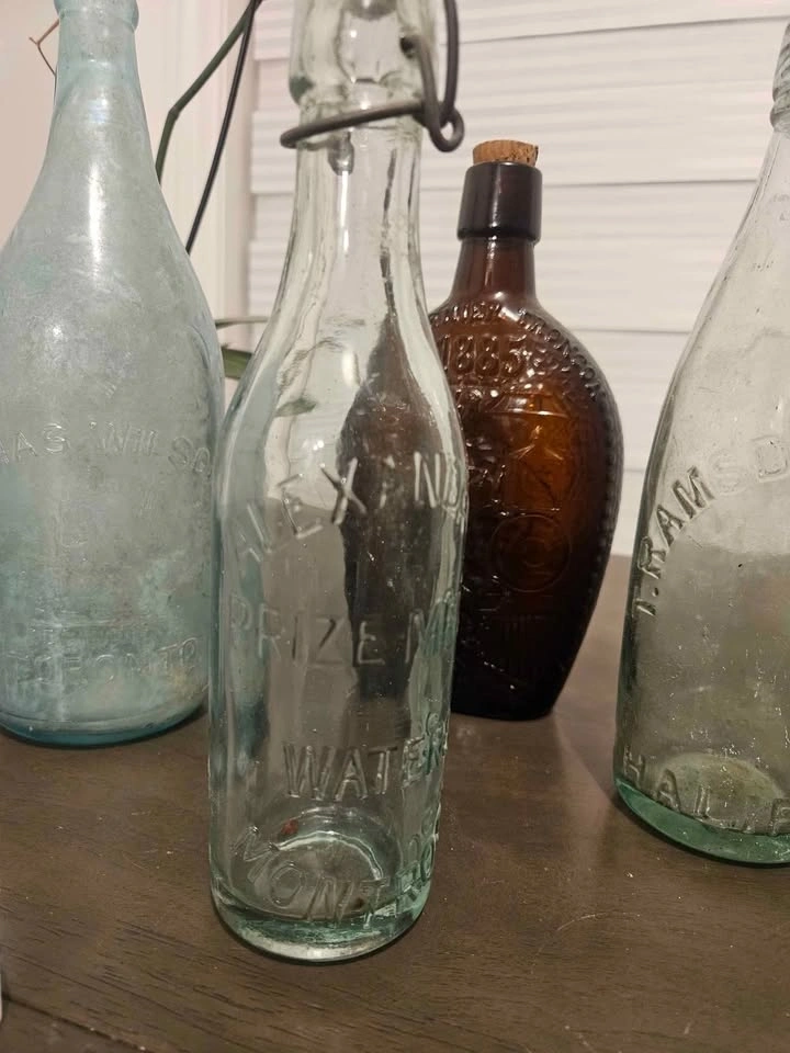 Lot includes 3 antique glass bottles: Alexandre prize medal waters, Chas Wilson large squirrel bottle, and T. Ramsden & Sons Halifax. Feel free to message if you have any questions!