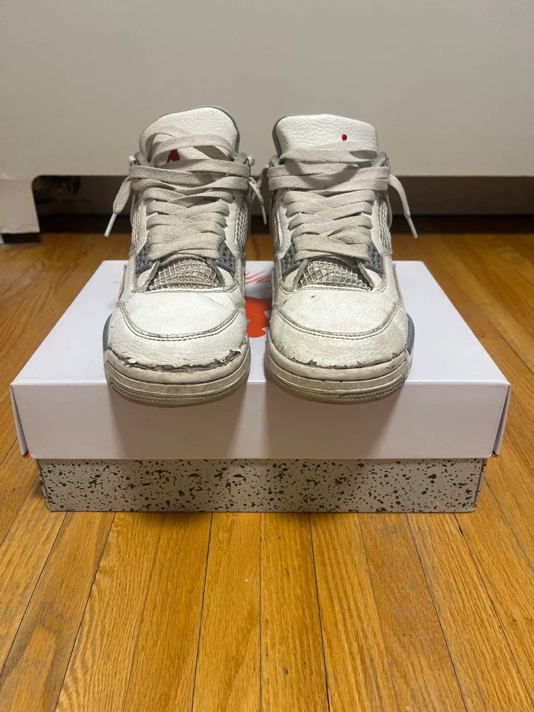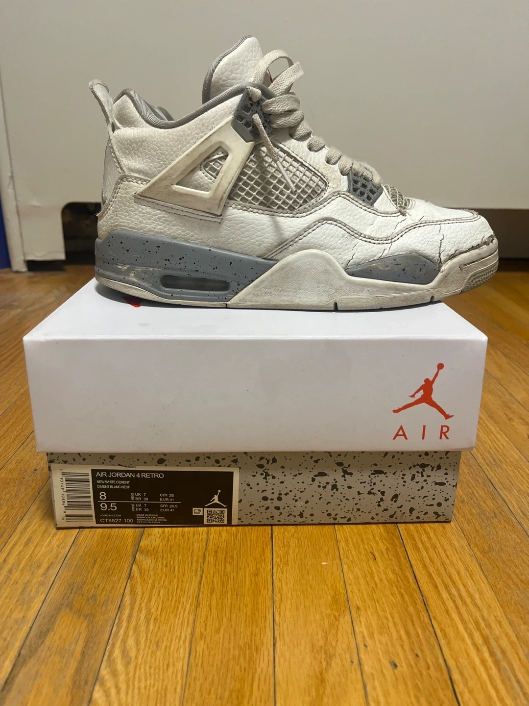 Selling a pair of Air Jordan 4 Retro sneakers in size 8.5. Used. Comes with