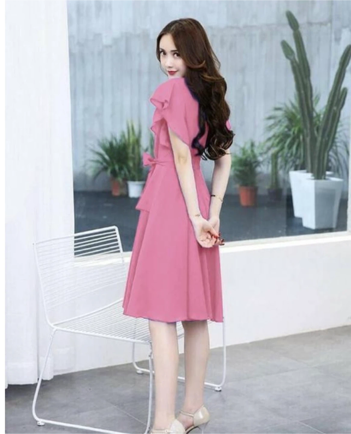Dusty rose Chiffon Ruffle Sleeve Dress