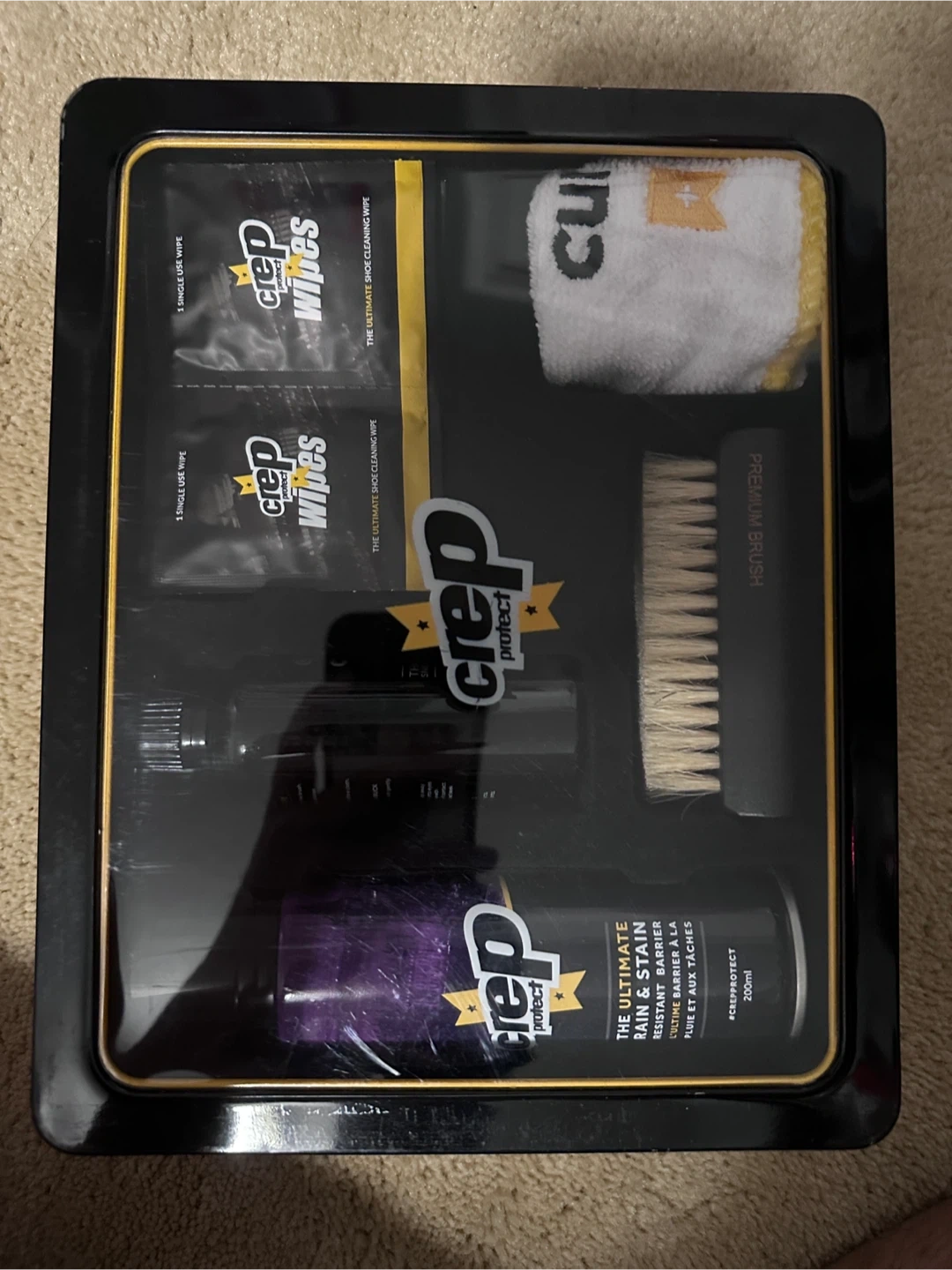 includes the ultimate rain & stain resistant barrier spray, 200ml. It also comes with 2 single-use shoe cleaning wipes and a premium brush.