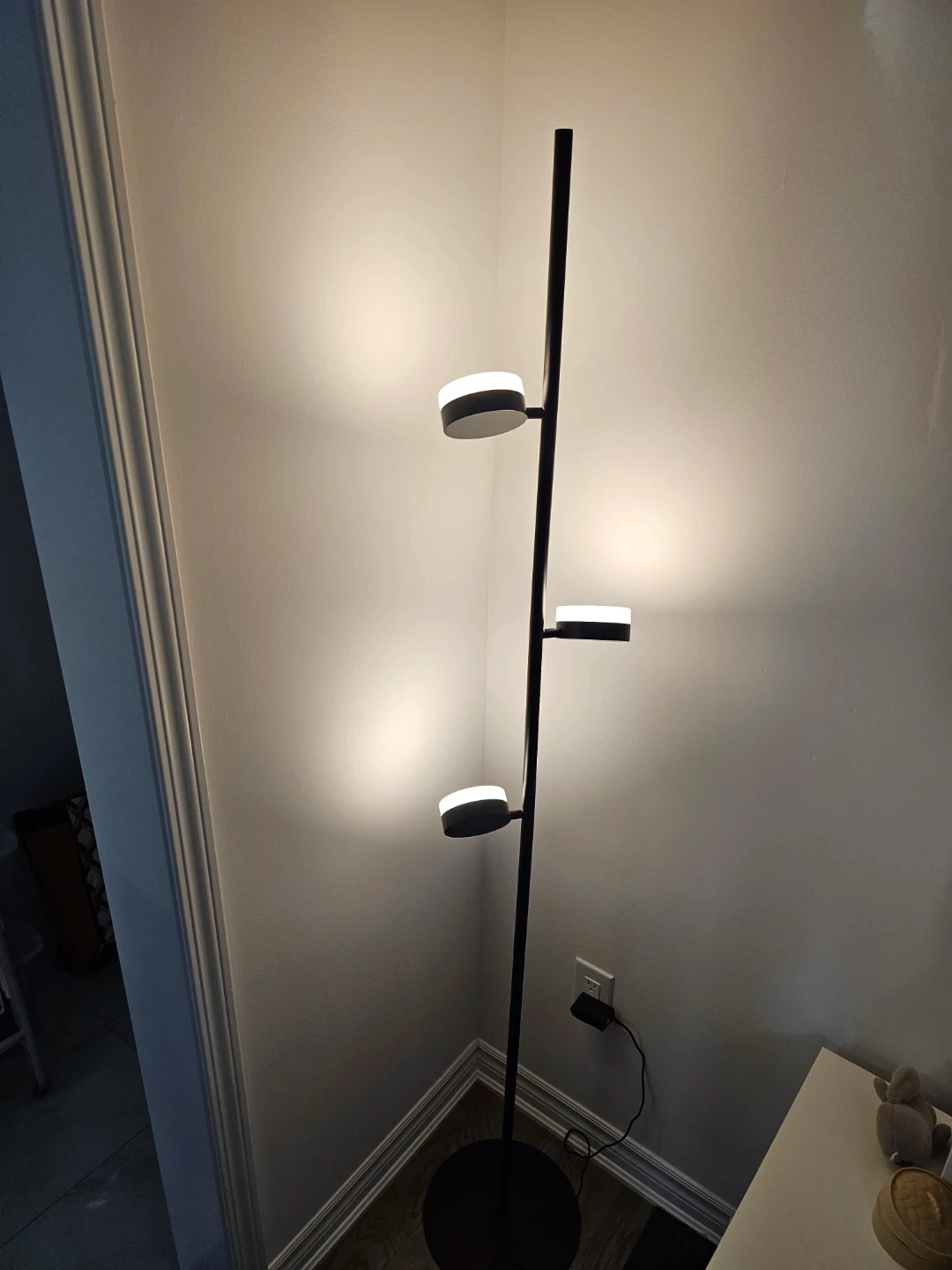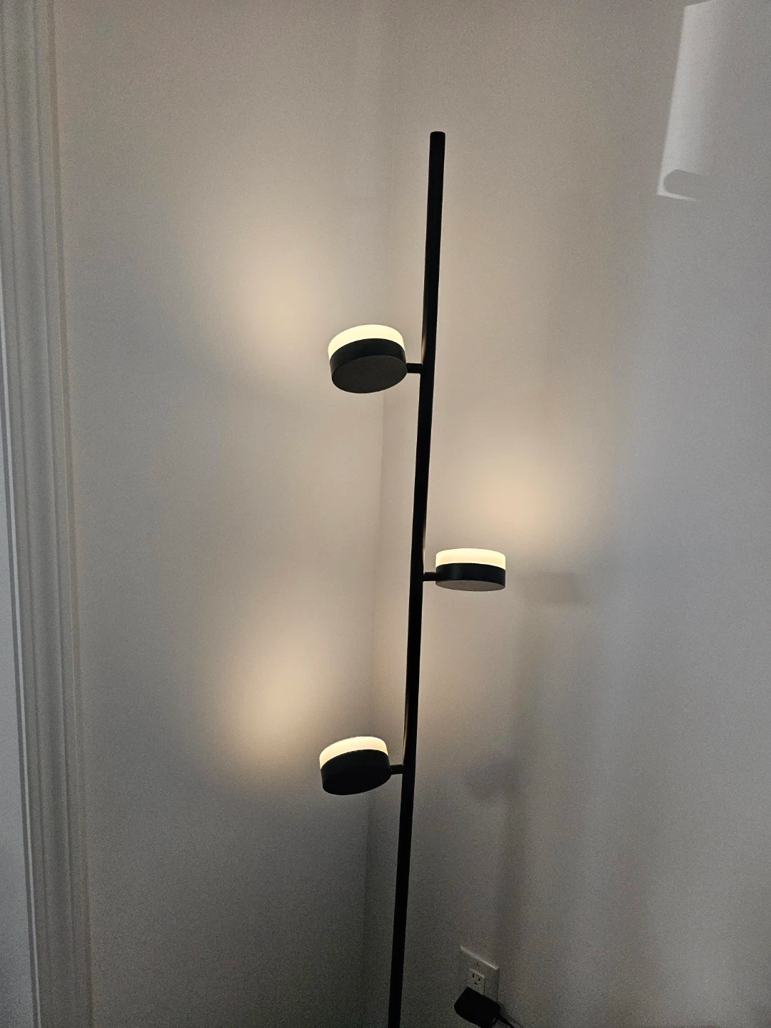 This EQ3 sleek floor lamp features a modern black design with three illuminated disc lights. It's perfect for adding ambient lighting to any room. The tall, slim profile makes it a great accent piece for corners or beside furniture.