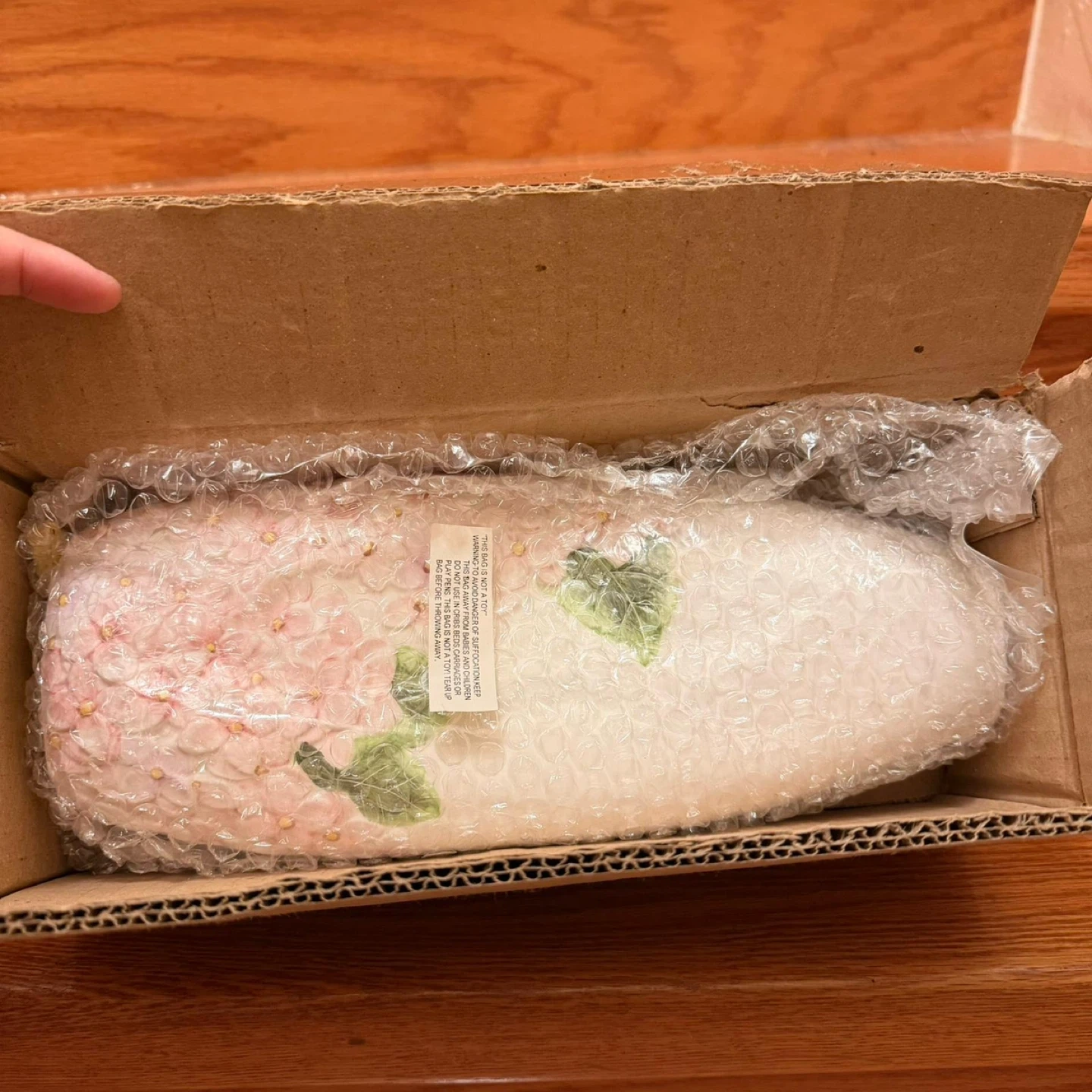 White Ceramic Vase with Pink Hydrangea Design