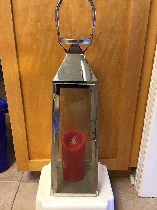 Beautiful, like new, decorative candle lantern. Candle made with real wax, included. Uses 2 AA batteries (not included). Pickup only in Kanata, Moodie Dr & Queensway. Cash only.