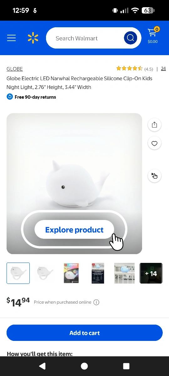 This is a cute Globe Electric LED Narwhal rechargeable silicone clip-on kids night light! It's in great condition and ready to light up a little one's room. It measures 2.76" in height and 3.44" in width. Originally bought for $14.94