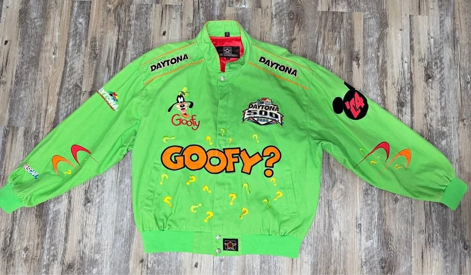 Up for sale is a vintage JH Design Disney Goofy NASCAR Daytona 500 embroidered jacket. This jacket features detailed embroidery and bold graphics, making it a great piece for NASCAR and Disney fans or anyone who loves unique vintage outerwear. The jacket is in good condition with no issues. It has been well cared for and is ready to wear. Size: XL Feel free to message me if you have any questions or would like additional photos.