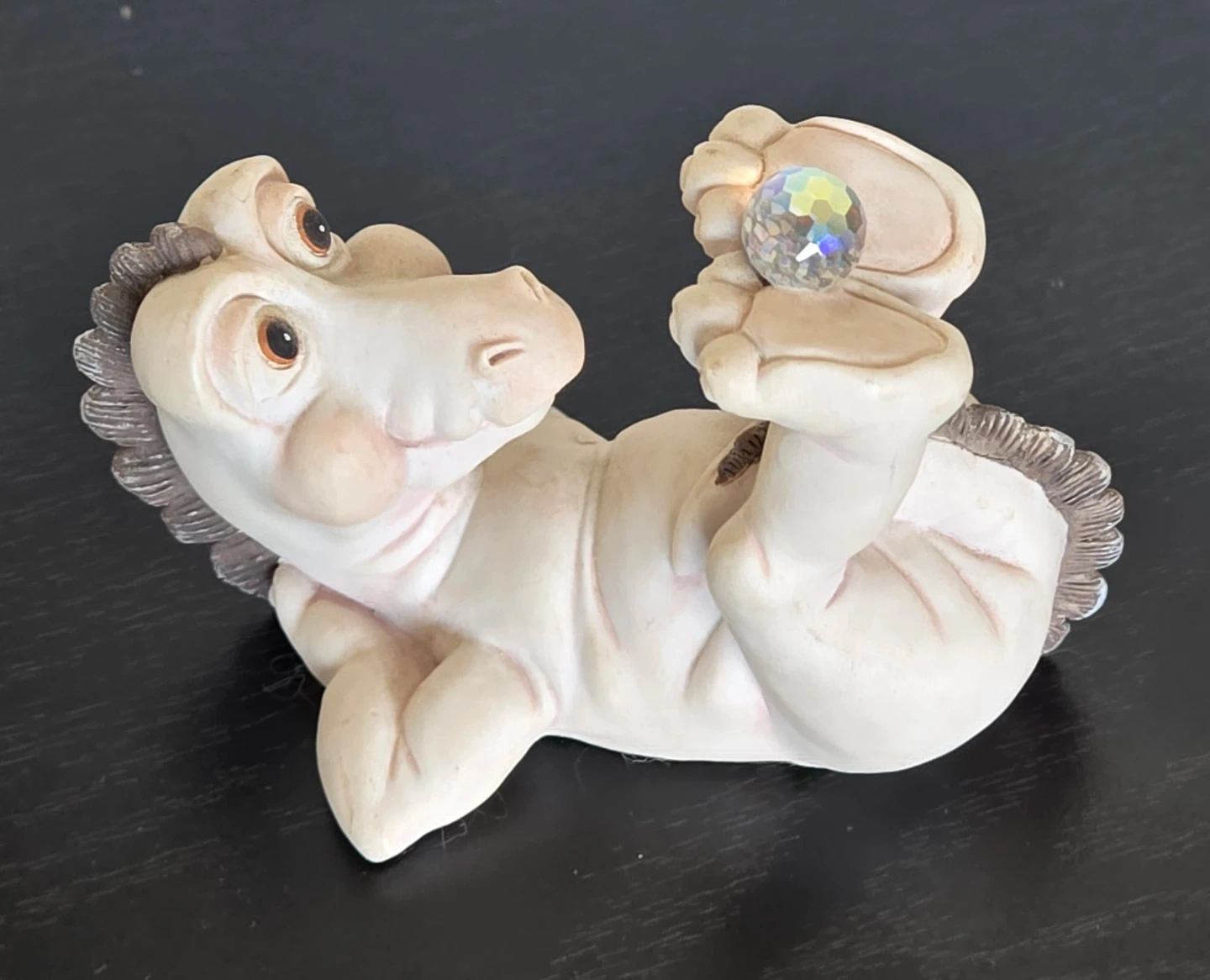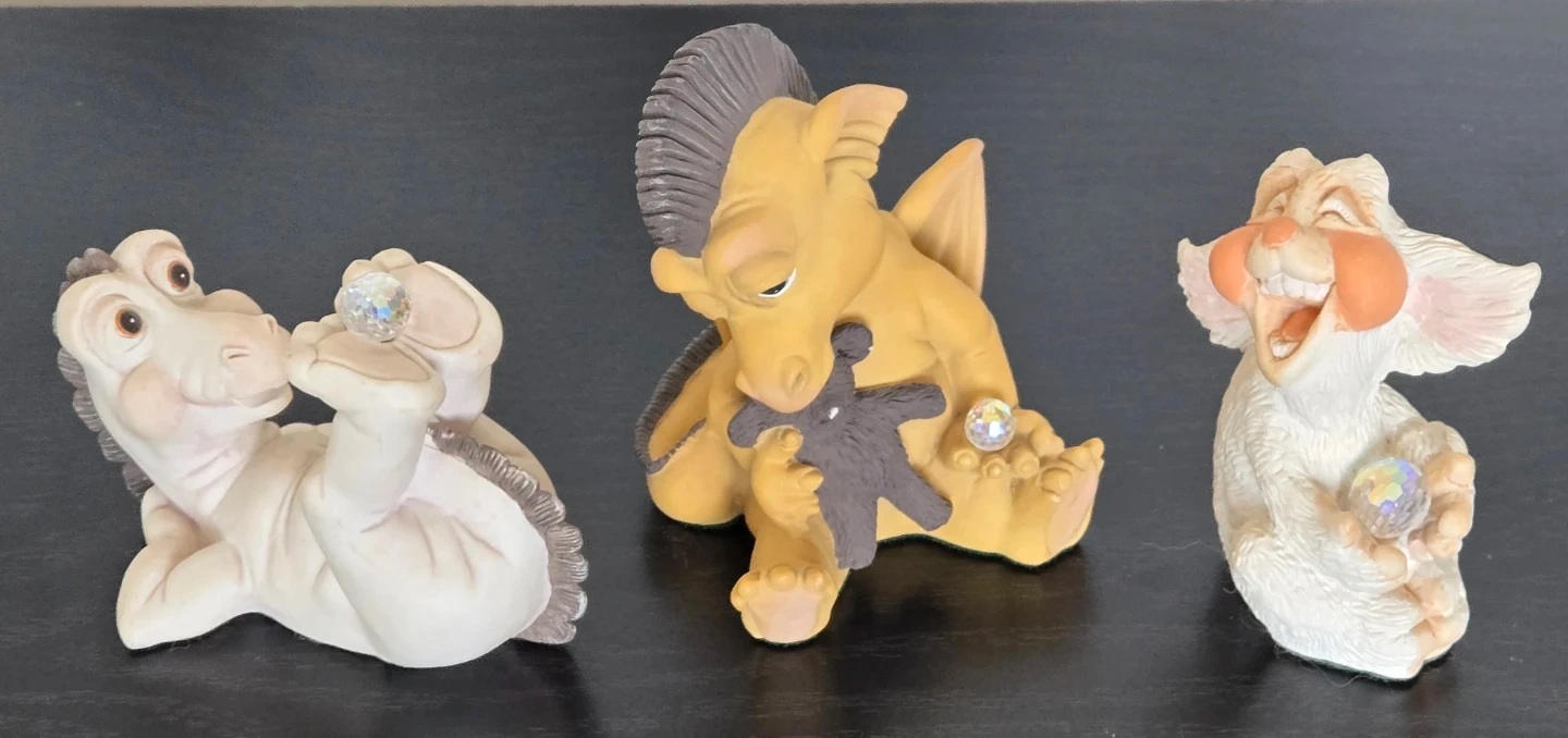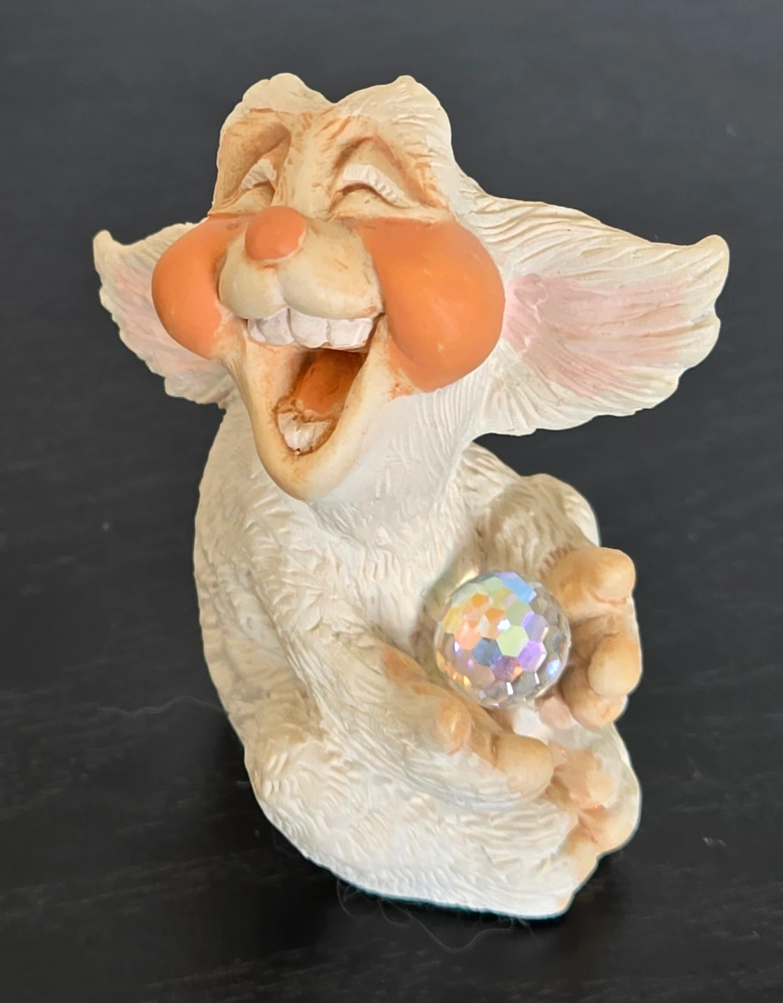 Beautiful Set Of 3 Authentic " World Of Krystonia" Collectable Figurines. These Whimsical Fantasy Characters Were Created in England By David Woodward and Pat Chandok. They are Made of Hand Painted Cold Cast Porcelain and Each Features a Genuine Swarovski Crystal. Includes Jumbly The Juggler 3411, Poffles 1401 and Koozl 2901. Year 1980's-90. 2 1/2"To 3 1/2" Height. These Pieces are all Retired and No Longer in Production. Asking $40 FIRM FOR ALL 3