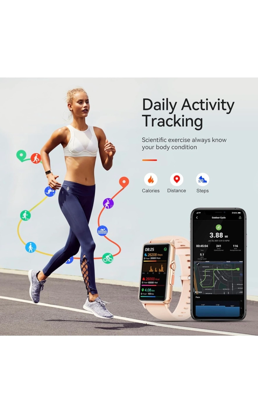* 【Bluetooth Call & Smart Notifications】Smart watches for men and women are equipped with high-quality speakers and are connected to mobile phones via Bluetooth. You can directly use the watch to answer calls/read messages. The smart watch also supports viewing call records/message reminders/social media notifications. All notifications appear on your wrist and vibrate to keep you connected.