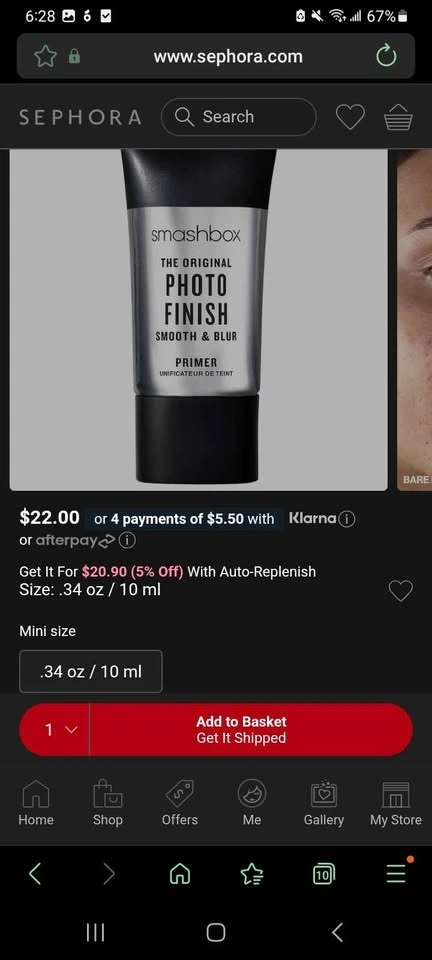 A clear, oil-free primer gel that smooths skin and the look of pores so your makeup lasts. Wear alone or under makeup. New Smashbox Photo Finish Smooth & Blur Primer. Original formula for smooth skin. Travel size, good for travel or trying out. It is 0.17 fl oz / 5 ml.
