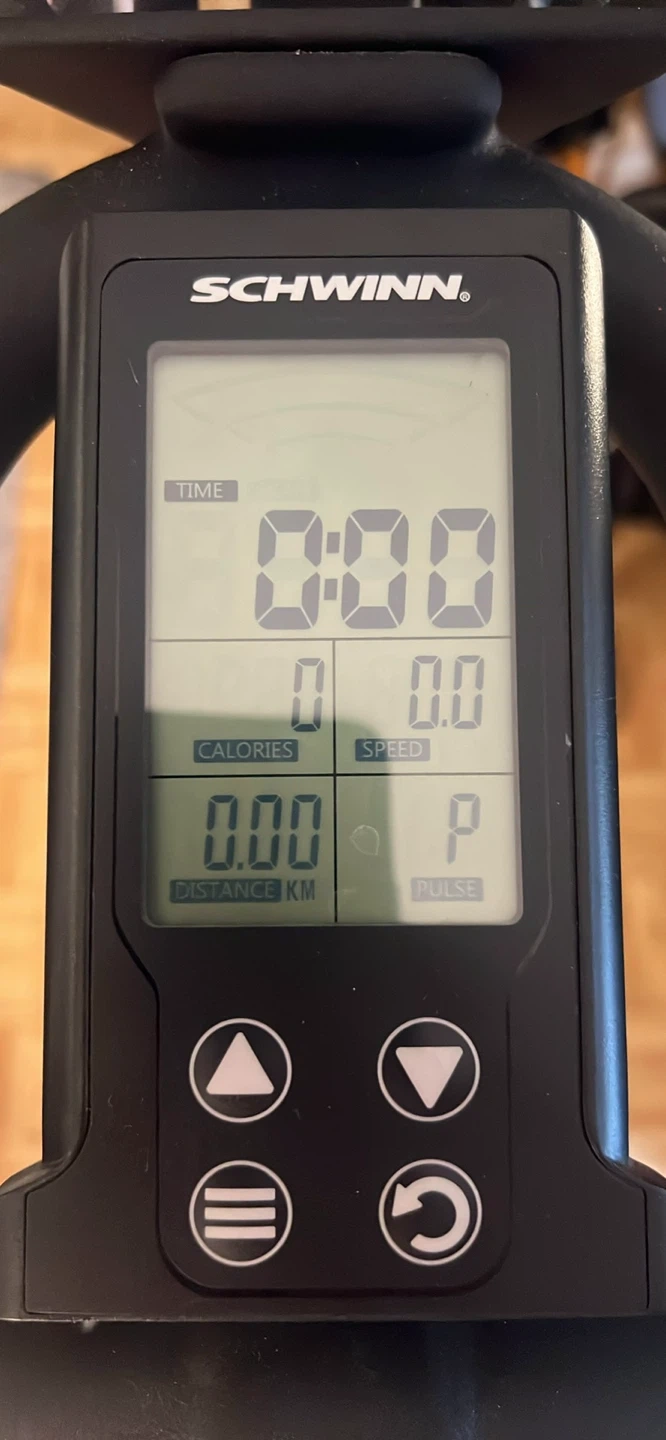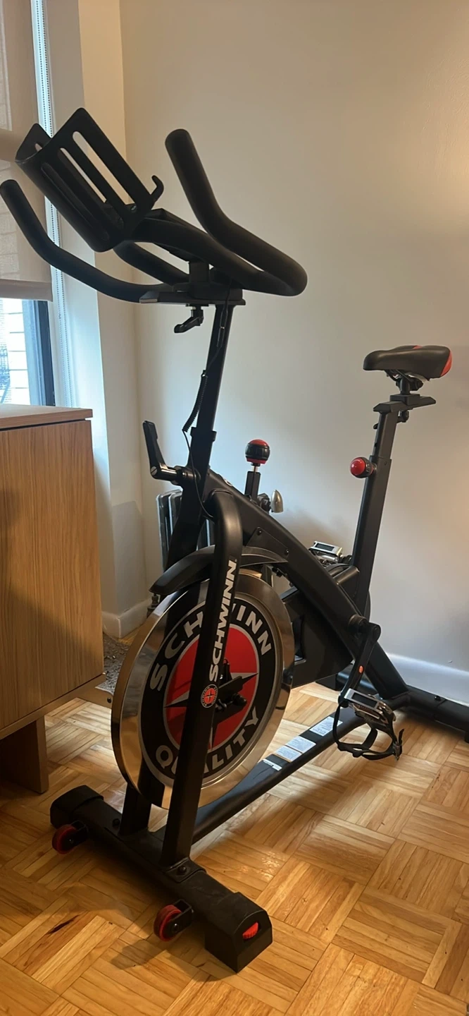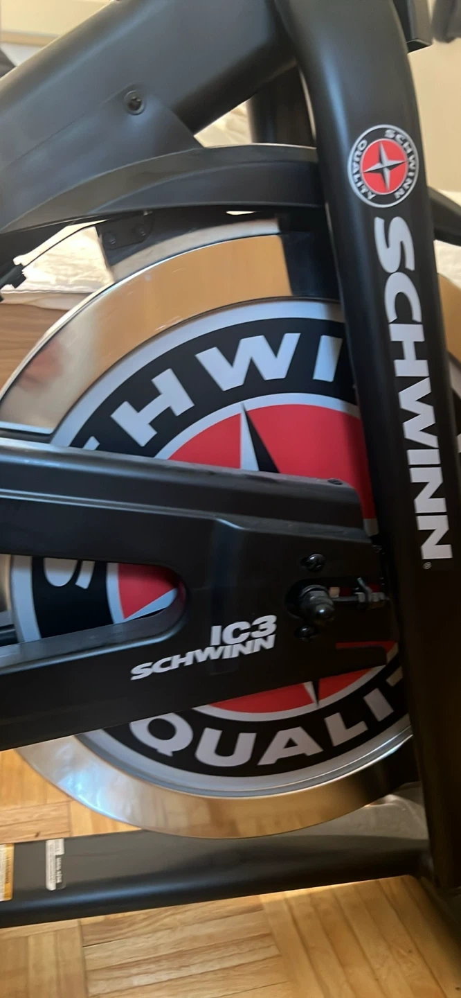 Schwinn IC3 indoor cycle. It's a great way to get a solid workout at home! Features a 31 lb flywheel and a built-in LCD console that tracks time, distance, speed, and calories burned. Adjustable seat and handlebars for a customized fit.