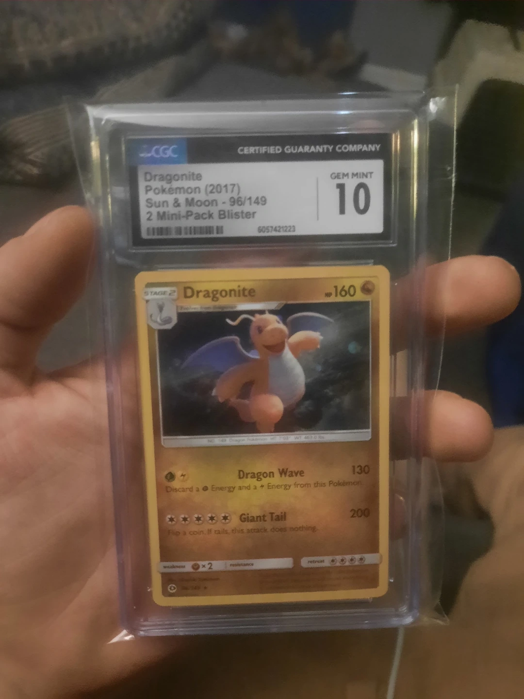 175 OBO This is a 2017 Dragonite 96/149 Sun & Moon Cosmos Holo card, graded Gem Mint 10 by CGC. It's part of the Sun & Moon series and features the 'Dragon Wave' attack.