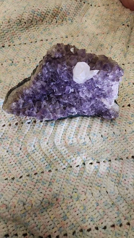 Deep Purple Amethyst Cluster with Large Calcite crystal Inclusio