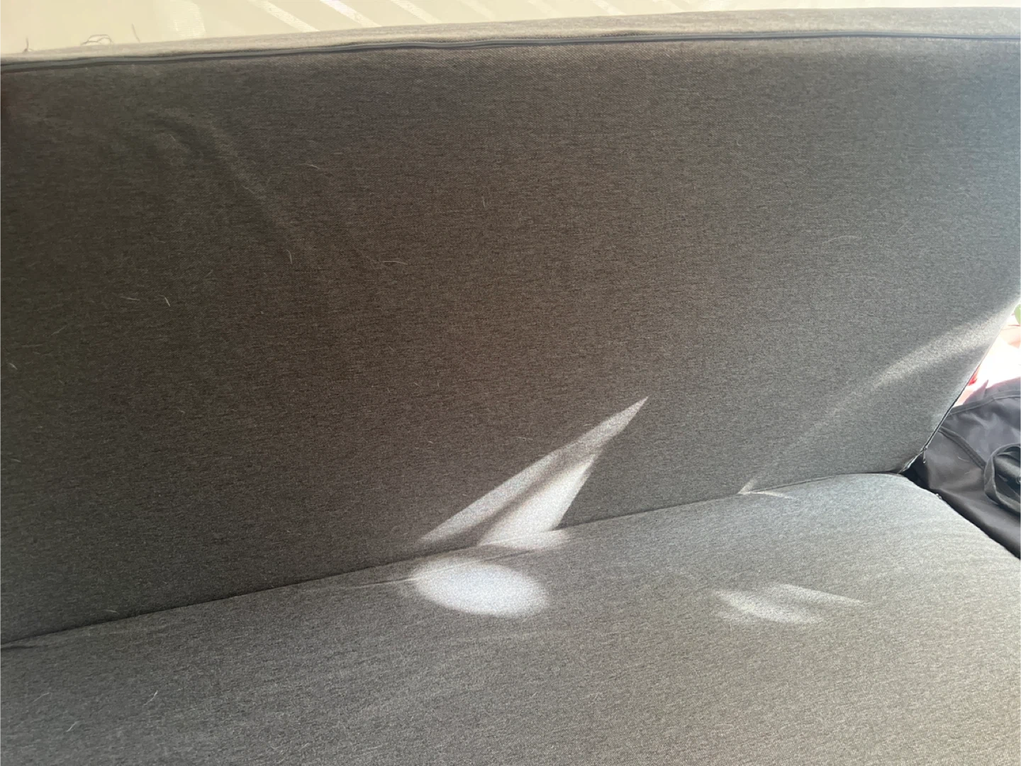 This is a foldable mattress topper. It's made of a grey fabric material. It can be folded for easy storage or transport. Great for camper vans and road travelling.