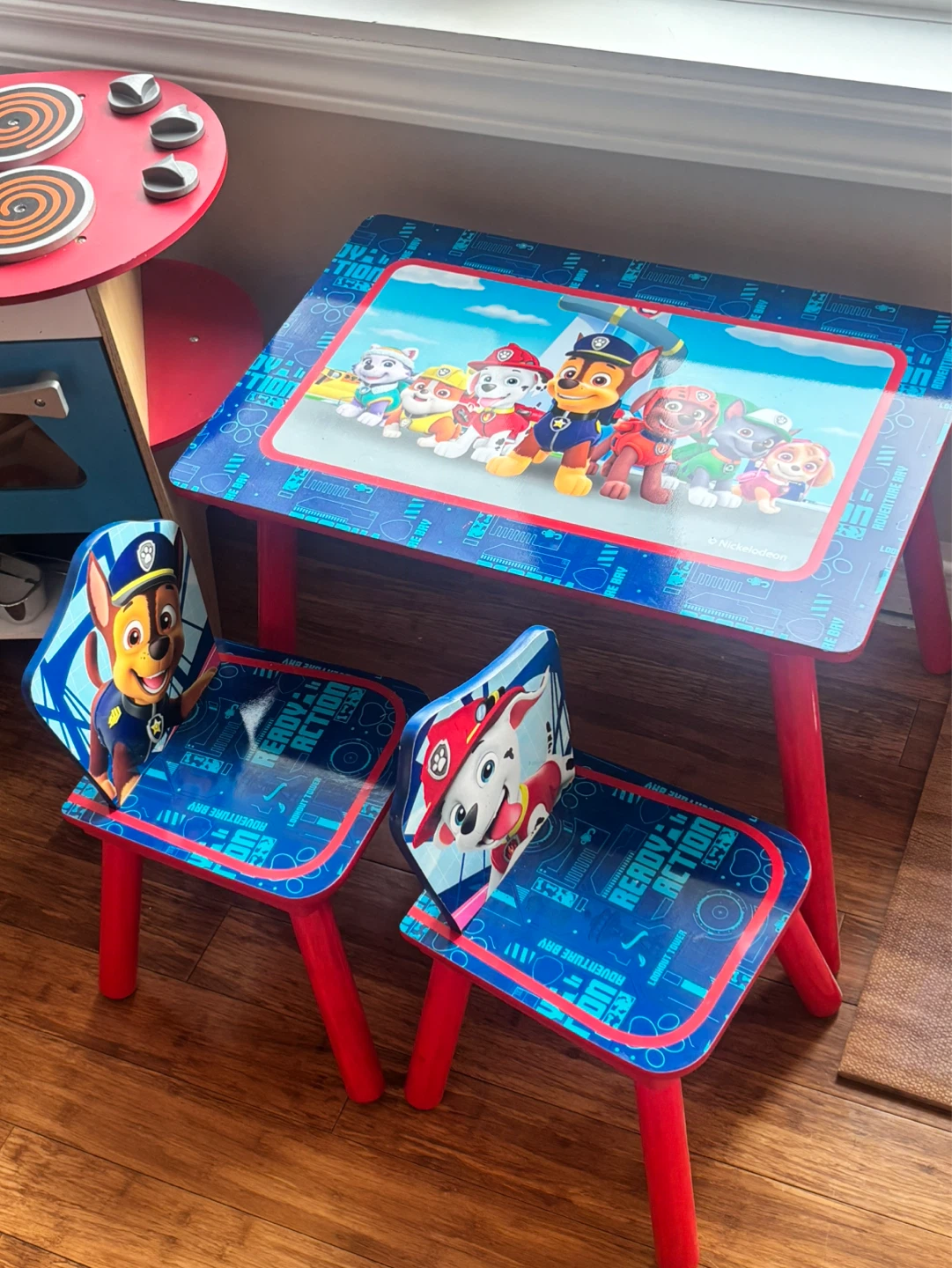 Great little table and chairs set featuring Paw Patrol characters. It's perfect for your little one's playtime or drawing activities. Made with durable materials for kids.