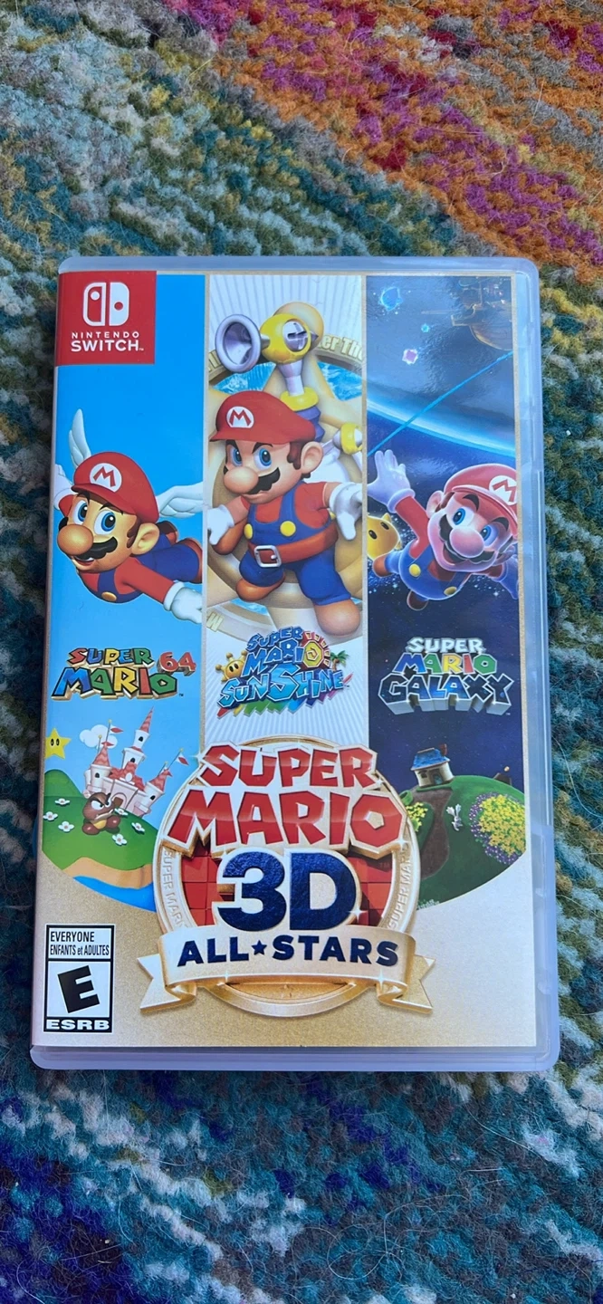Originally $300! Great deal! Selling a copy of Super Mario 3D All-Stars for the Nintendo Switch! This game includes Super Mario 64, Super Mario Sunshine, and Super Mario Galaxy all in one package. It's rated E for Everyone, so it's perfect for all ages!