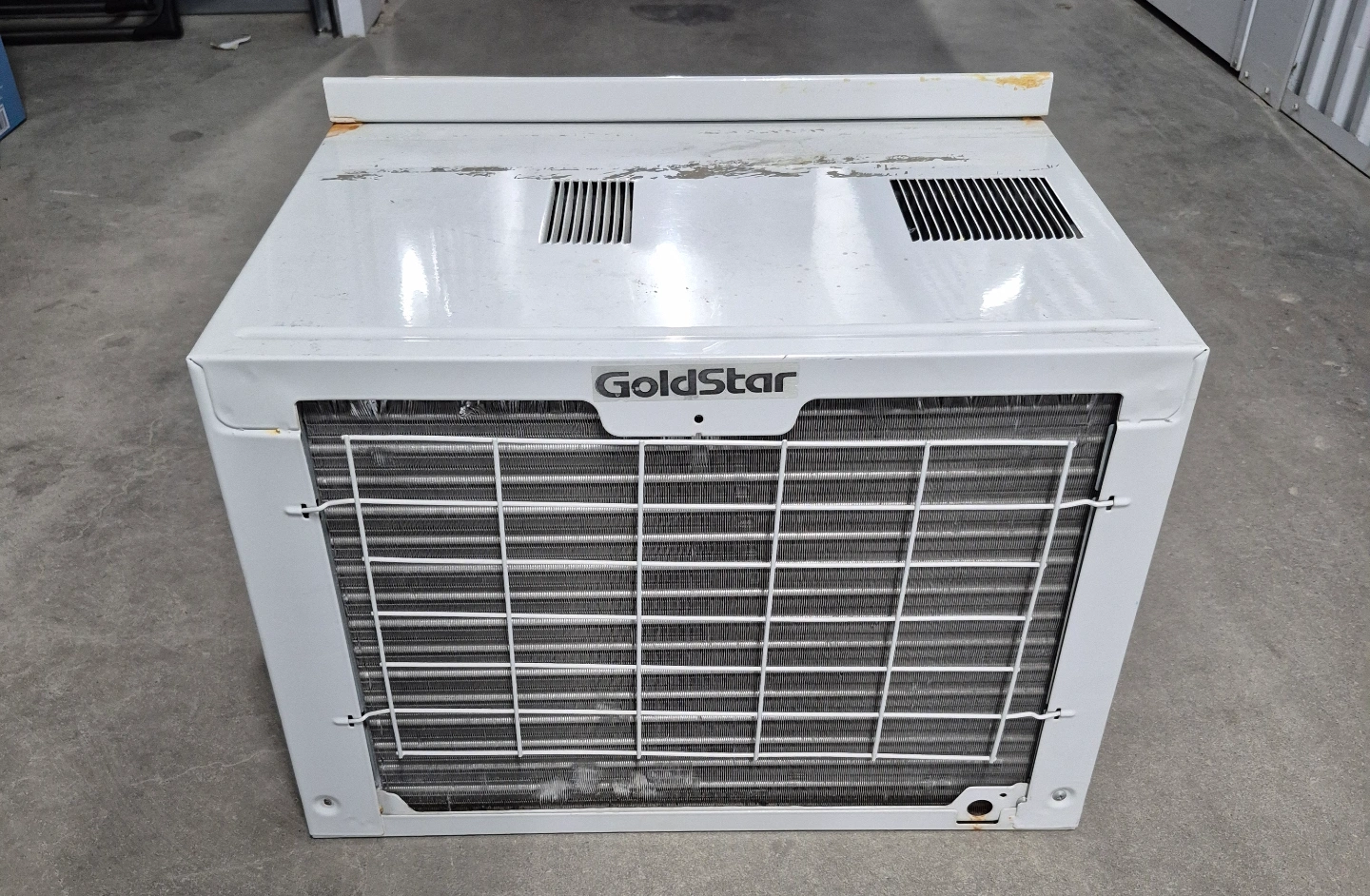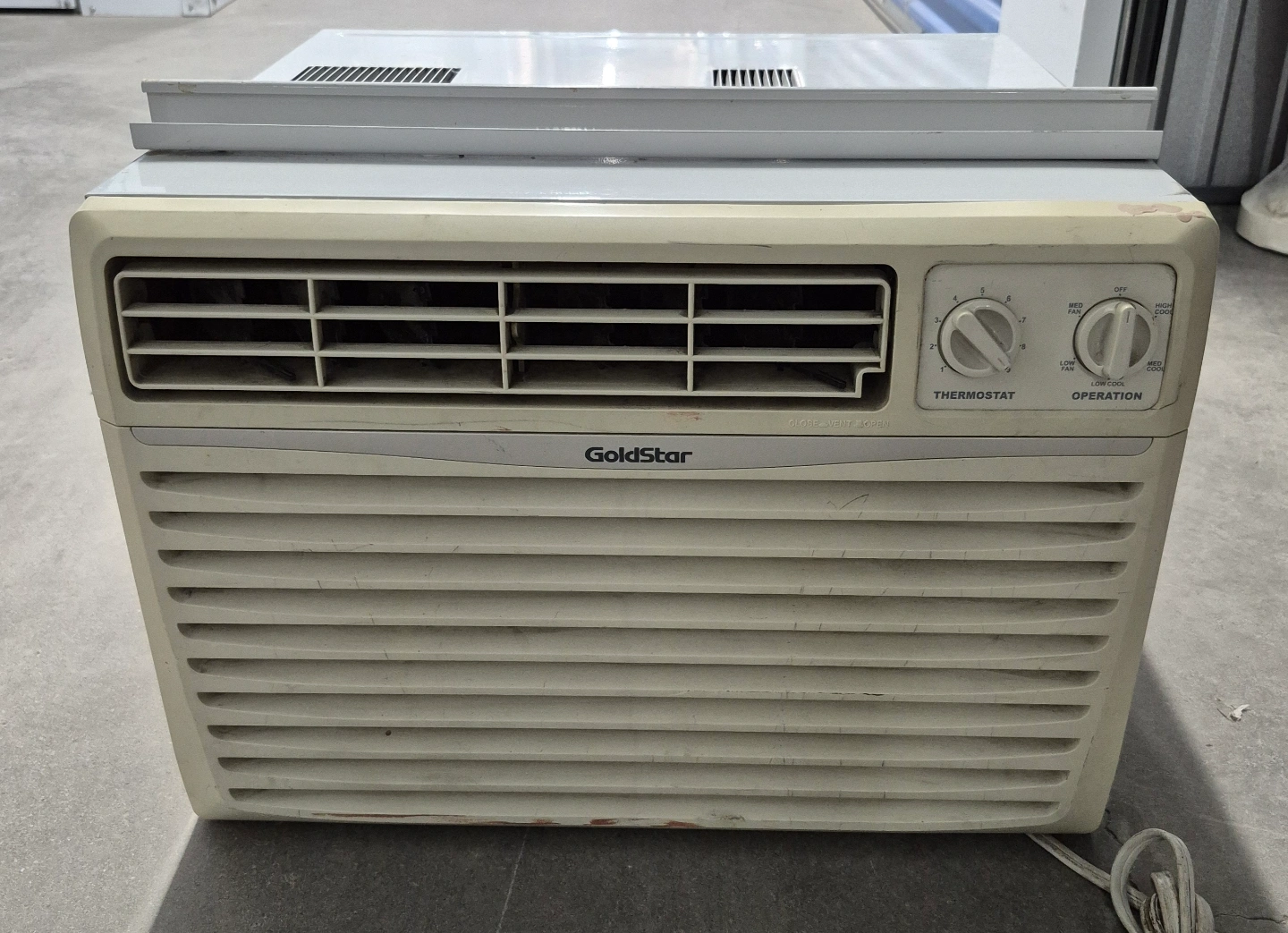 Used GoldStar window air conditioner. Features adjustable thermostat and operation settings.