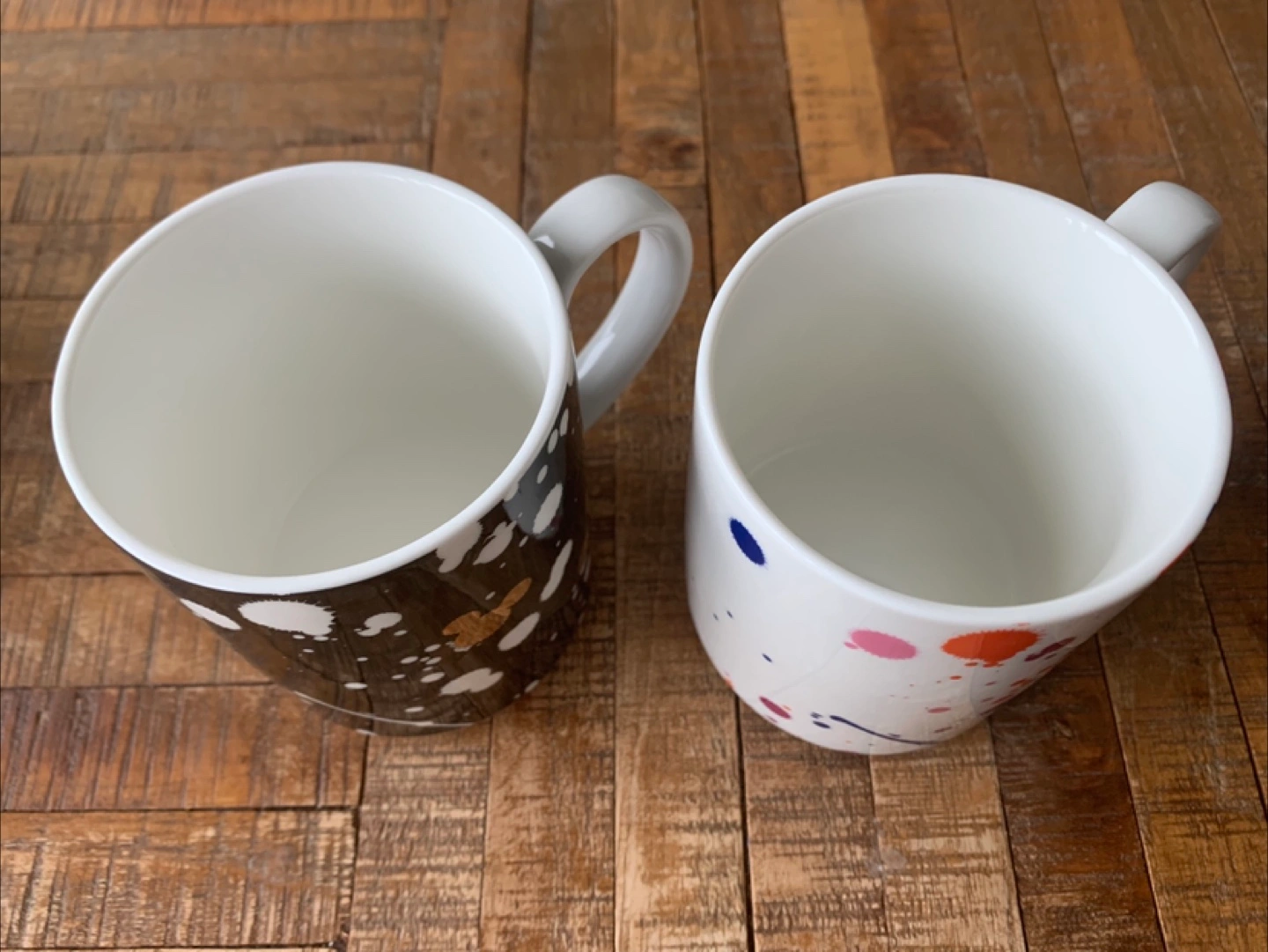 Brand new, pair of mug cup set Kawaii collection Japan. One with black and white spots. The other mug with various colour spots. Perfect for your morning coffee or tea.