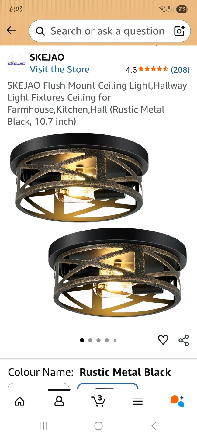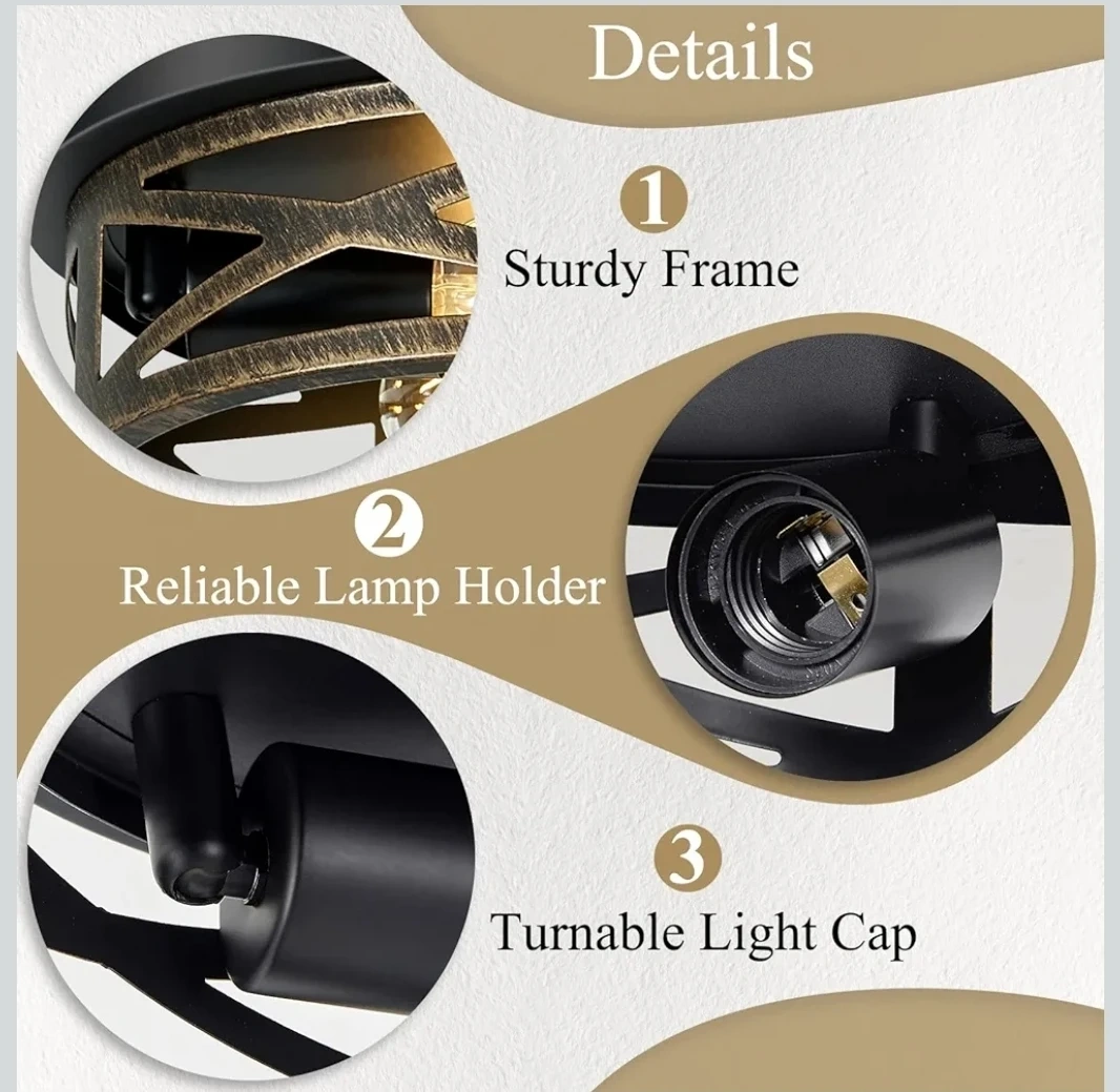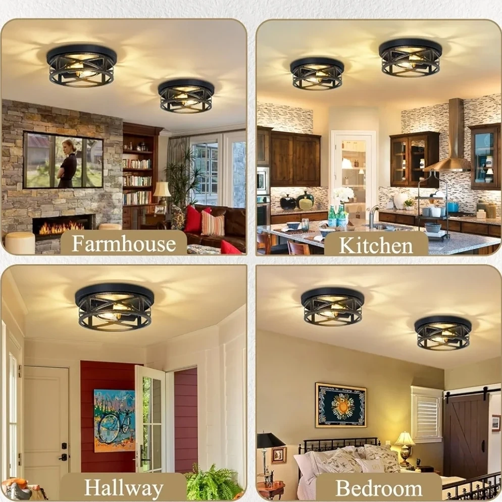 This SKEJAO flush mount ceiling light features a sturdy frame and reliable lamp holder. The light cap is turnable for easy adjustment. It uses an E26 standard base with a 60W max bulb. This light fixture is suitable for hallways, kitchens, or bedrooms.