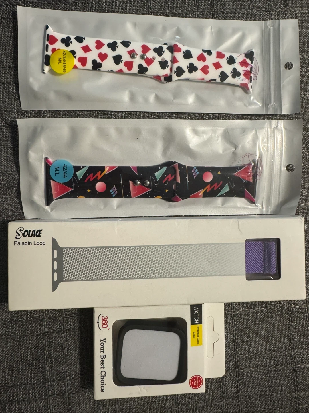 Apple Watch bands. Various styles. They are all size M/L, fitting 42/44/45/49mm watches.