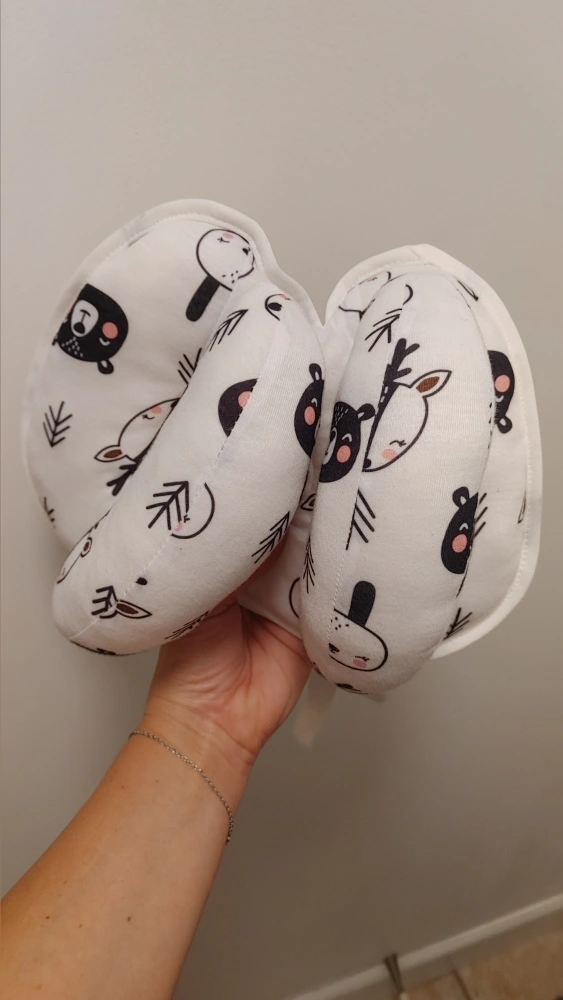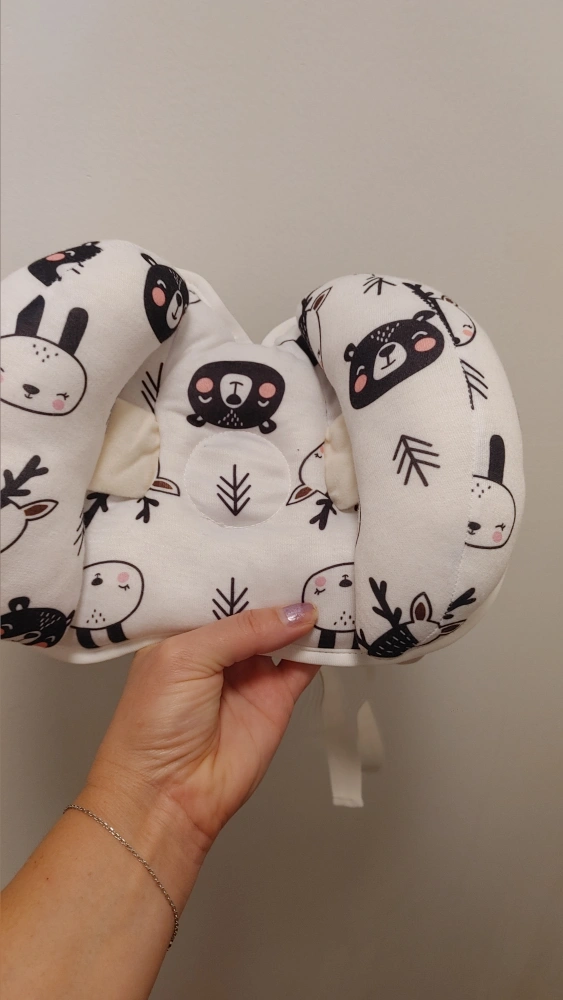 This Kakiblin pillow offers soft head and neck support for babies. It's made with a cute woodland animal print. Straps allow for adjustable sizing.