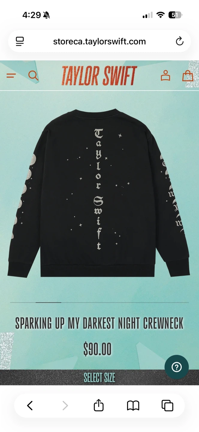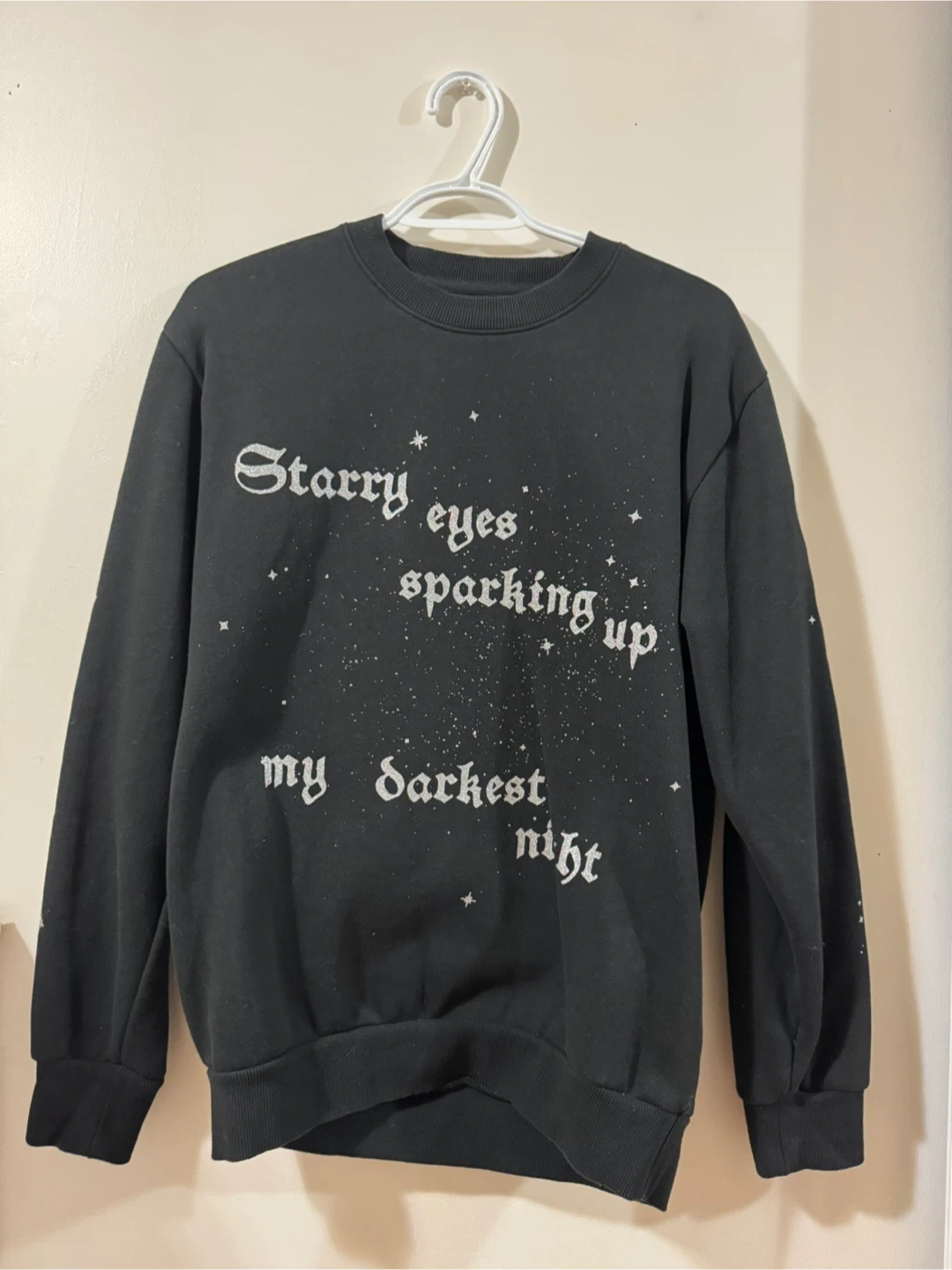Authentic “Sparking Up My Darkest Night” Taylor Swift sweater. Paid $90 plus tax. Selling for $70. Size is XS. Fits XS-Medium. It's made of 75% cotton and 25% polyester. Only worn once. Pick up or meet up in Mississauga. Burnhamthorpe and Erin Mills. DM for more info😊