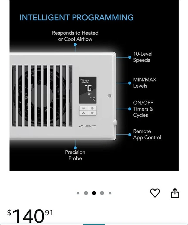 A register fan designed to boost and improve existing airflow from register holes in home HVAC systems. Compare to $160 including tax. Size 12 X 6 inches. Pick up from Pickering.