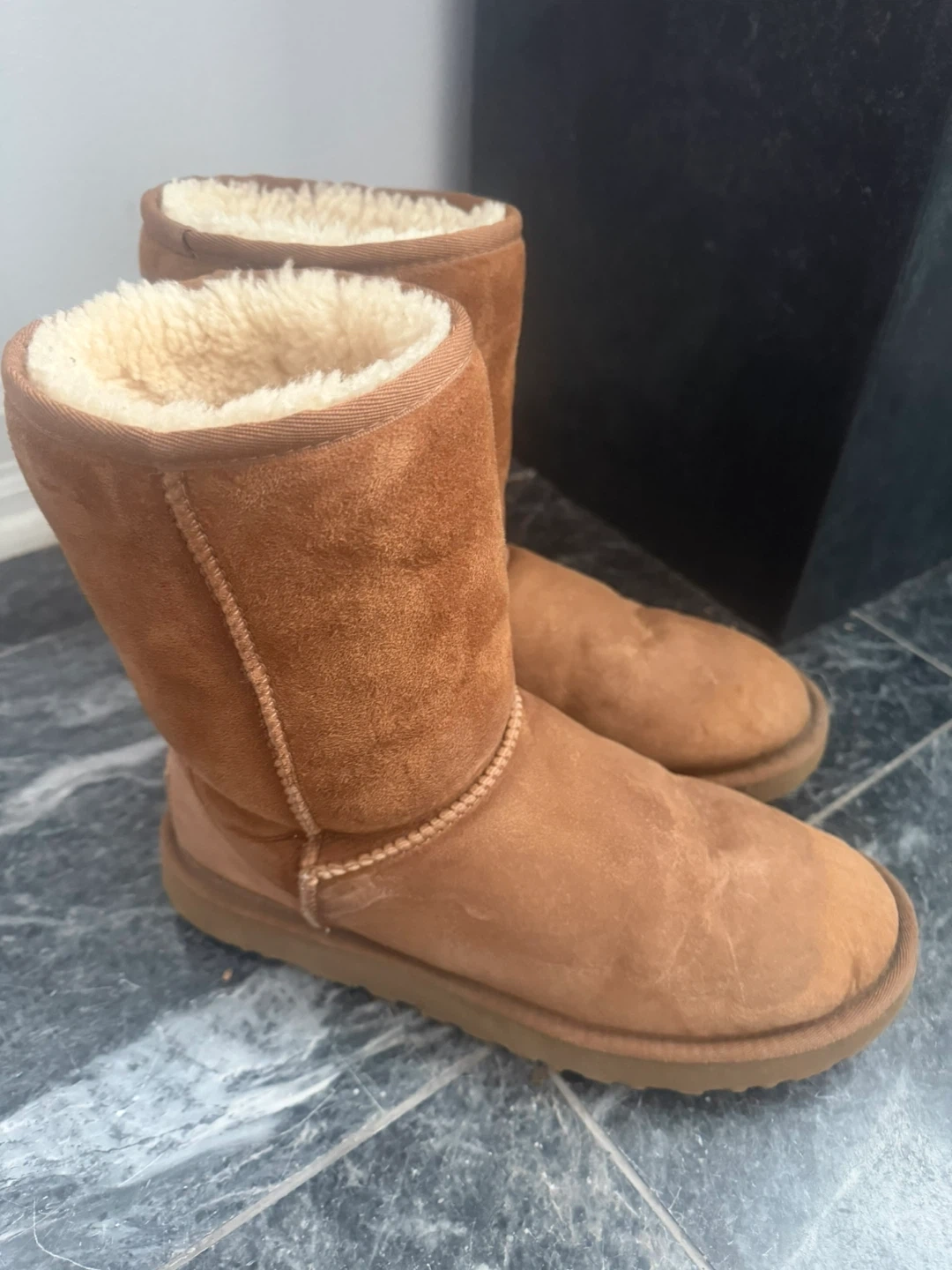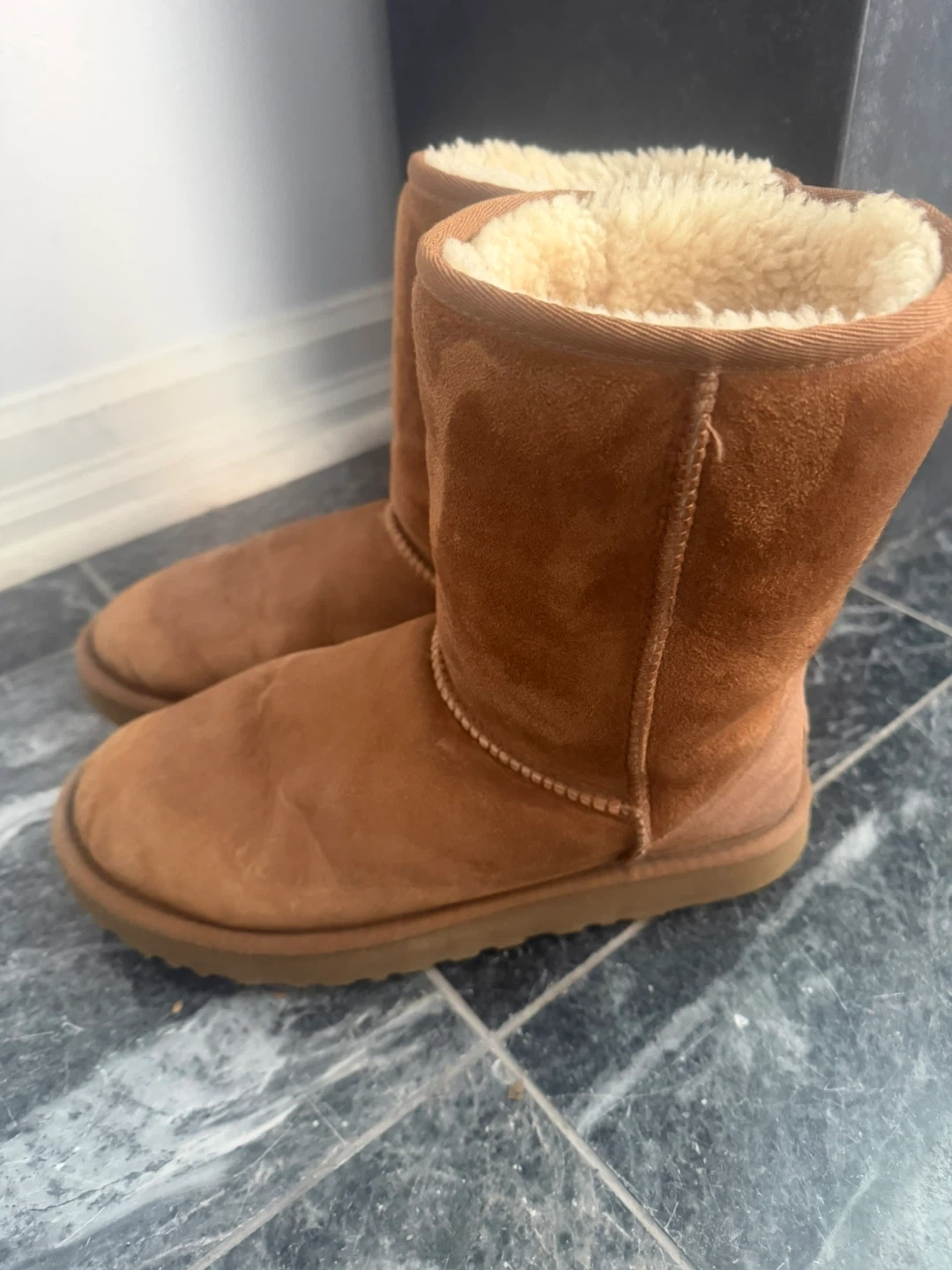 Selling a pair of UGG Classic Short boots in a size 8. They're in good condition and ready for the colder weather. These cozy boots are perfect for keeping your feet warm and comfortable!