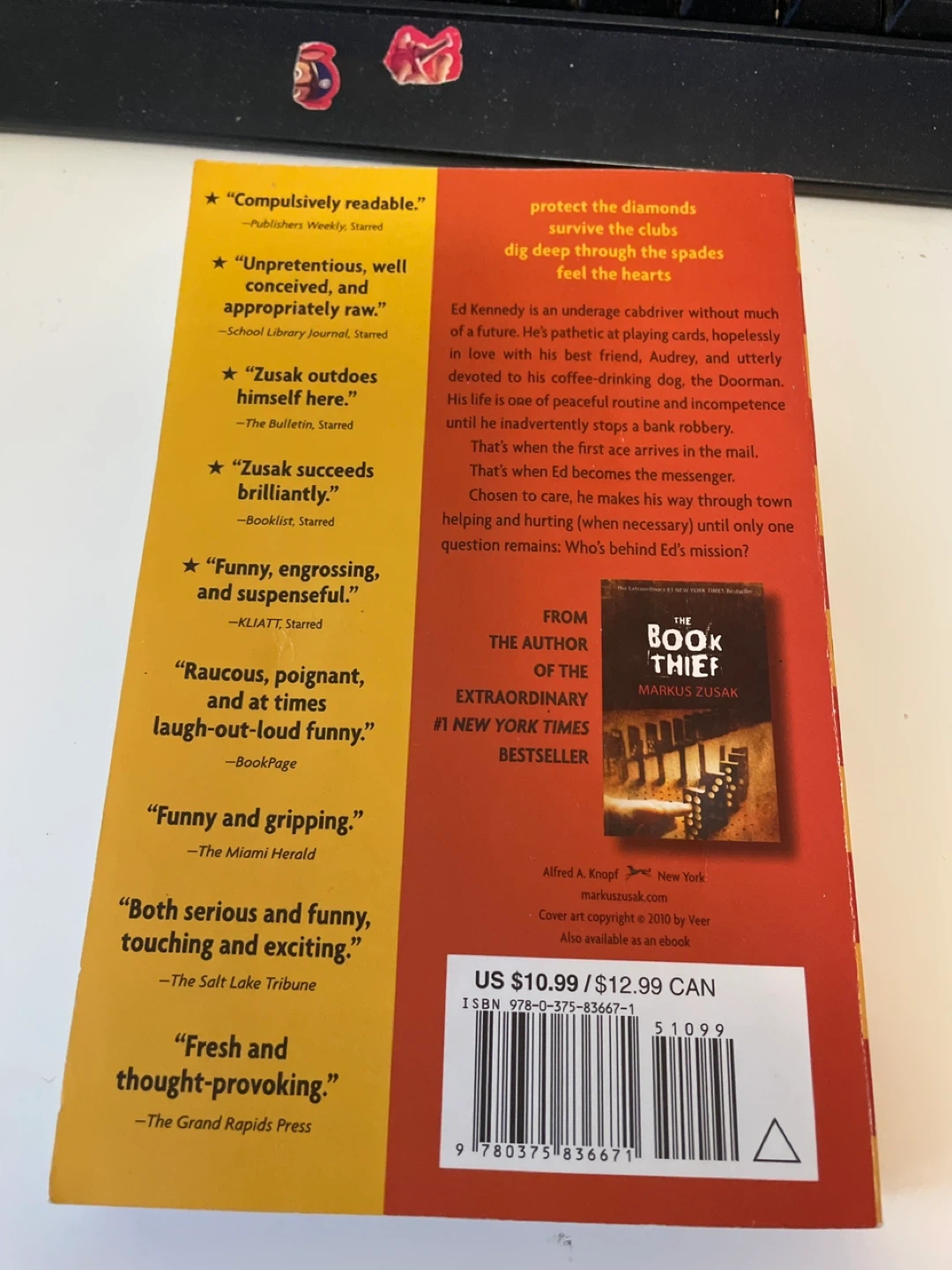 This novel follows Ed Kennedy, an unlikely hero who becomes a messenger. It's a story about chance, coincidence, and the search for meaning. It's written by the author of "The Book Thief".