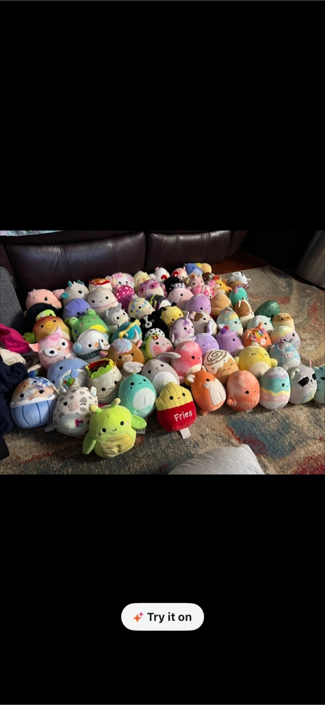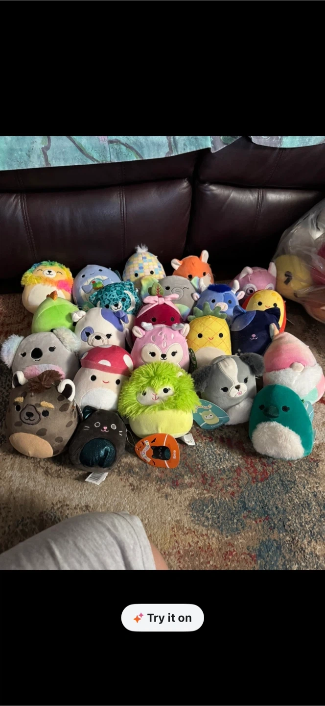 A large collection of assorted Squishmallows plush toys. These soft, huggable friends come in various sizes and characters. They're perfect for cuddling and decorating.