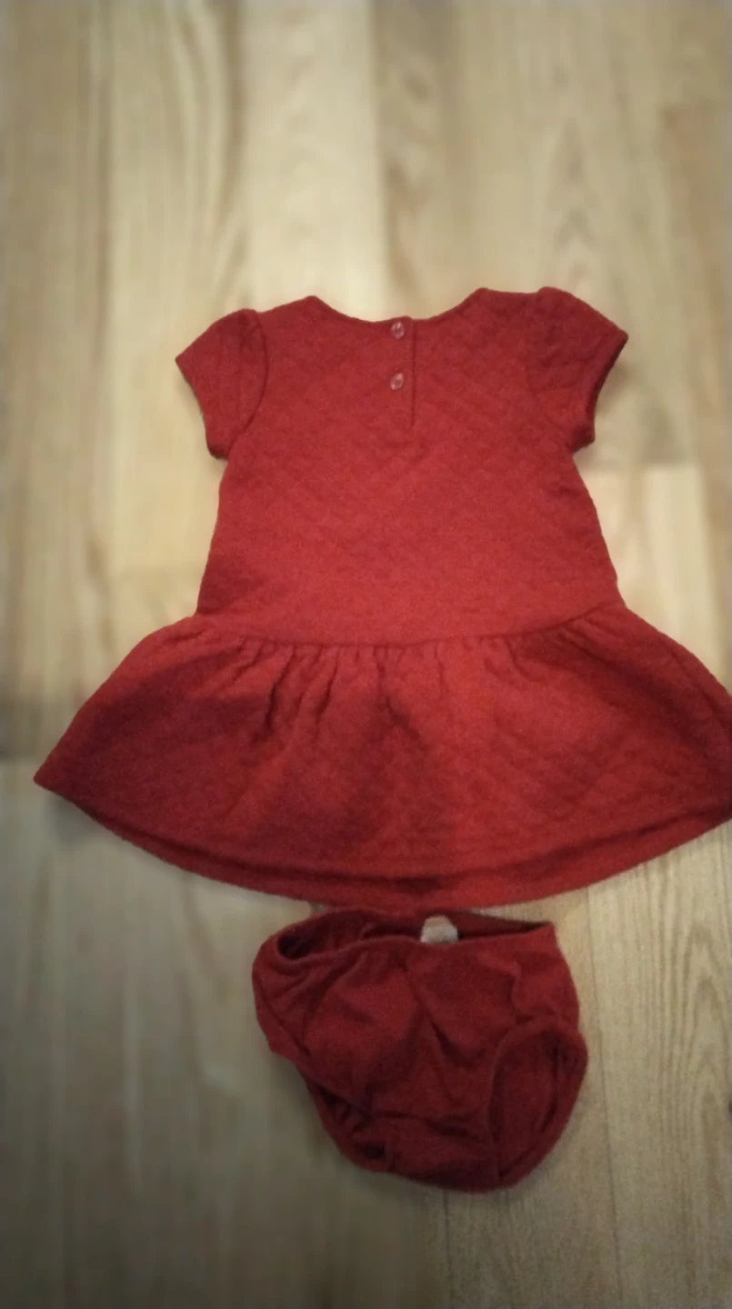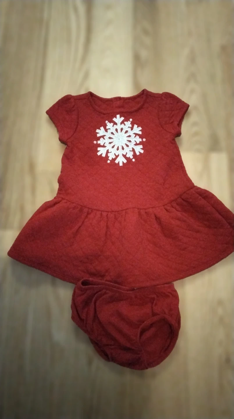 Cute red baby dress with a snowflake design! Includes matching bloomers. Perfect for the holidays or any special occasion
