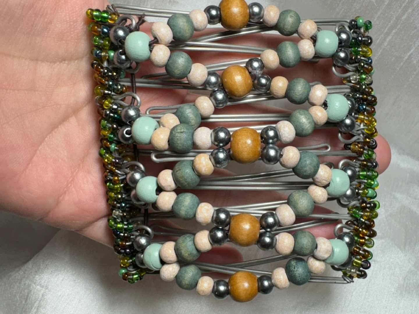 Unique beaded hair clip. Metal base. Various coloured beads. Great for adding flair to your hairstyle. Creat many different styles 😎 very comfortable. Rare find hair