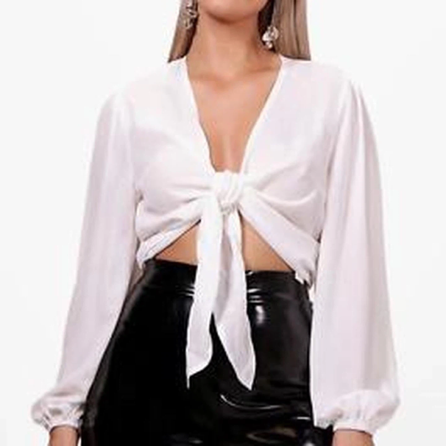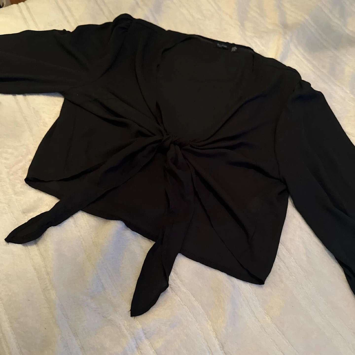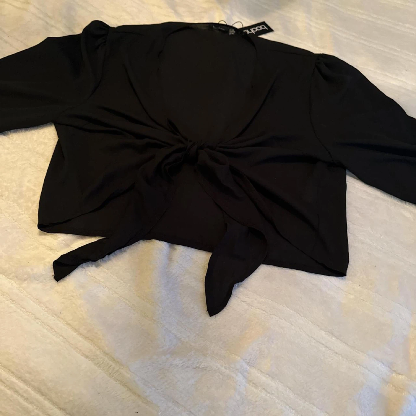 Cute black tie front crop top from Boohoo! It's in great condition and perfect for dressing up or down. It's lightweight and comfortable, making it a great addition to your wardrobe