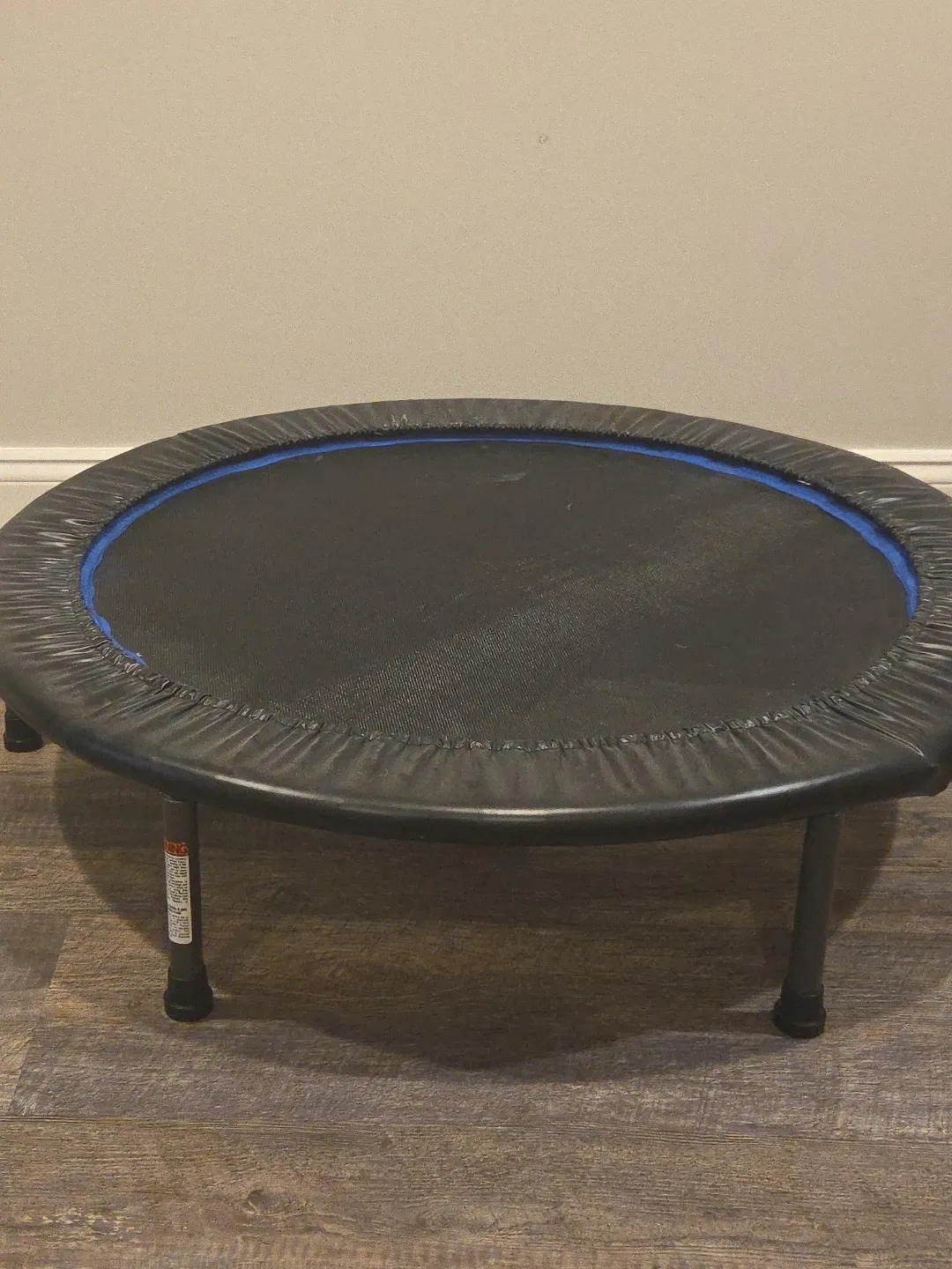 This is a compact rebounder trampoline, perfect for home workouts. It has a sturdy frame and a safe bungee cord system for quiet bouncing. This trampoline is great for cardio and low-impact exercise.