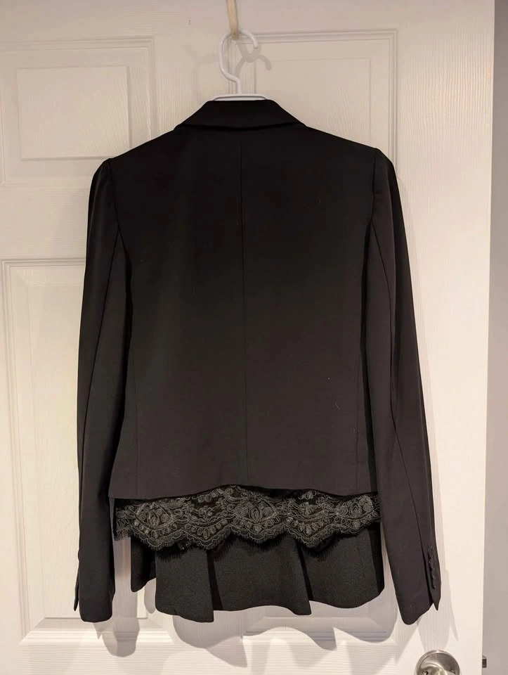 Melanie Lyne skirt suit size 2 women's. Very good condition. The blazer has an underneath lacy trim which can be snapped to the blazer to use or can be taken out. $20 for the set. Pick up near Nichols oval in Peterborough.