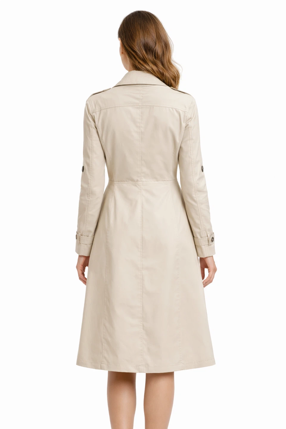 Classic and elegant women’s trench coat with a flattering tailored fit. Features double-breasted button closure, long sleeves, and functional pockets. Stretch fabric for comfort and easy movement. Perfect for spring, fall, or layering in cooler weather.