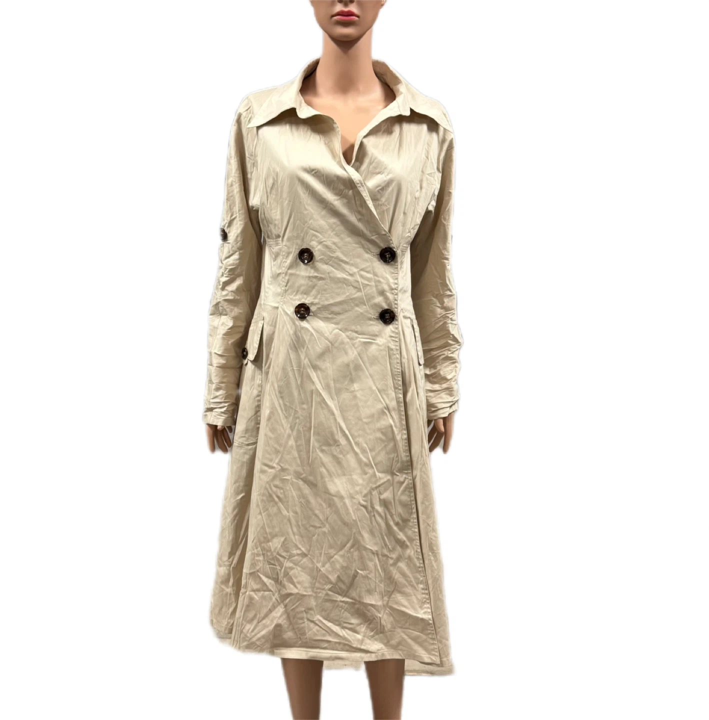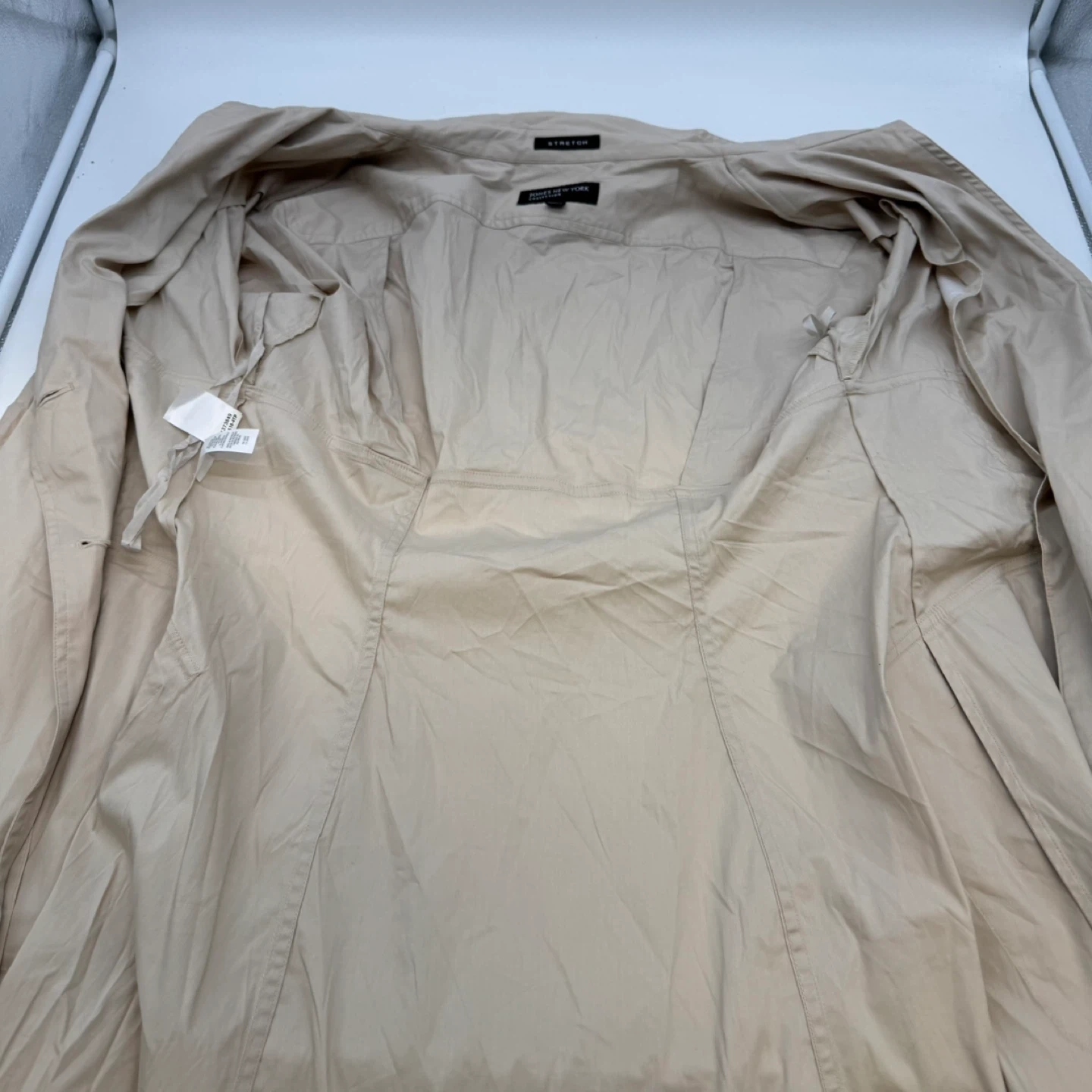 Jones New York Women Beige Trench Coat Stretch Size 14 New