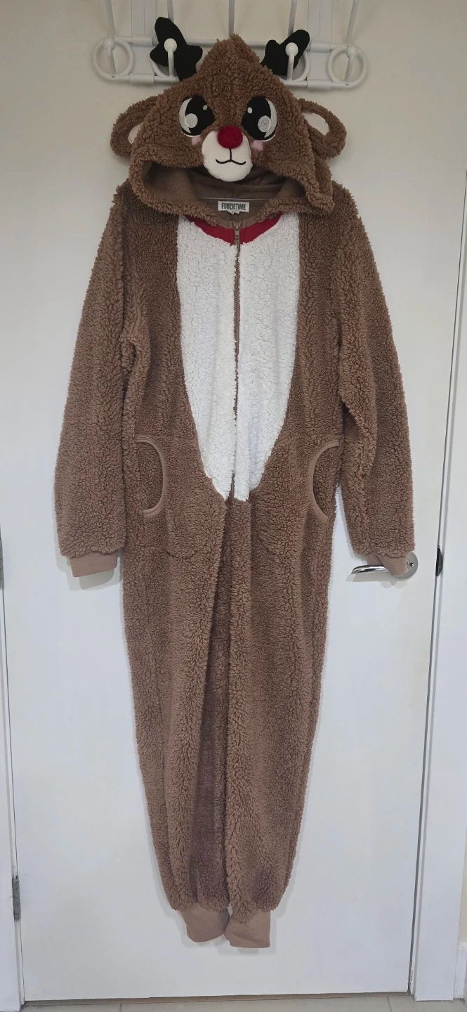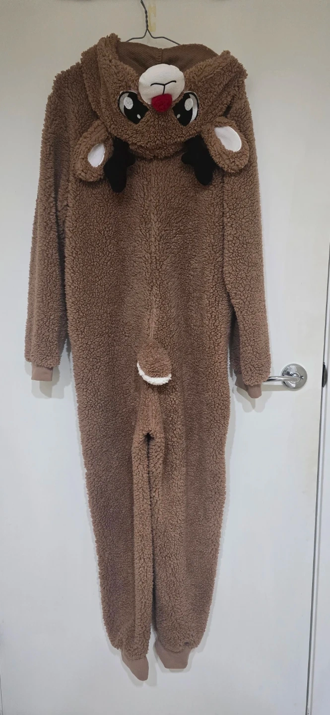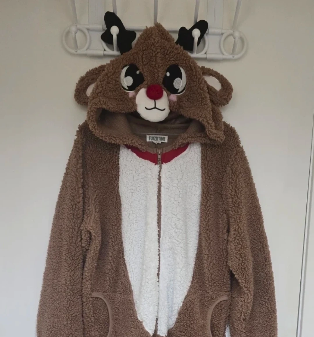 Buy & SellReindeer Fleece Onesie PajamasReindeer Fleece Onesie Pajamas$15Cozy brown fleece onesie pajamas designed as a reindeer. It features a hood with antlers and a fuzzy belly accent. Zipper front closure with pockets.ConditionNewSizelargeWHERE TO MEET535 Smithe StView MapSELLERverifiedLunaDowntown25421 reviews0 chats·0 favorites·8 viewsSEND CHAT TO SELLERHi Luna! I’m interested in your listing.Hi Luna! I’m interested in your listing.Get the Karrot app to chatSign In to chat