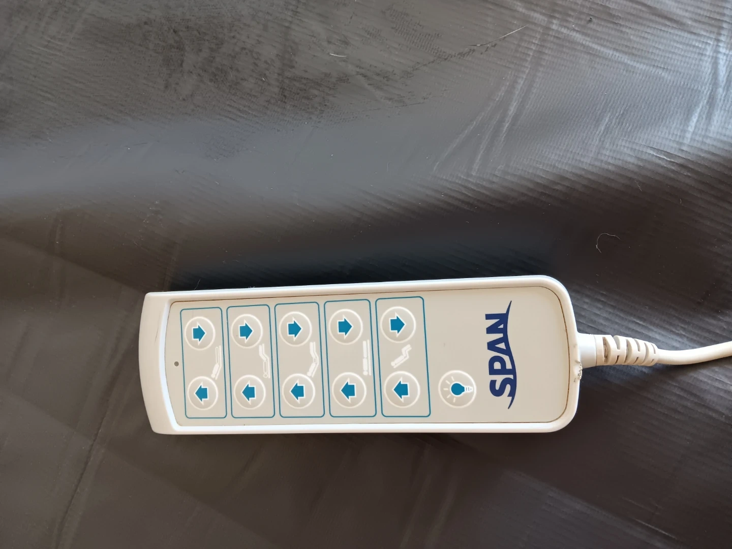 This is a SPAN electric hospital bed with a handheld remote. It's designed for patient comfort and care. Weight capacity is 500 lbs.