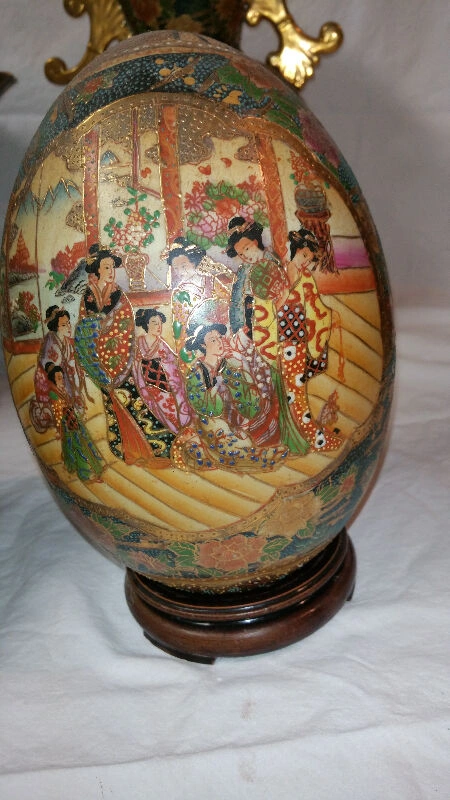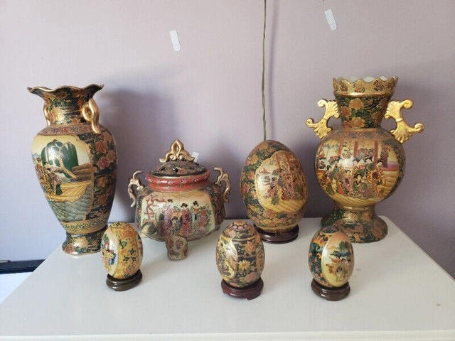 7 Set SATSUMA Vase Bowl Eggs Hand Painted Enamel