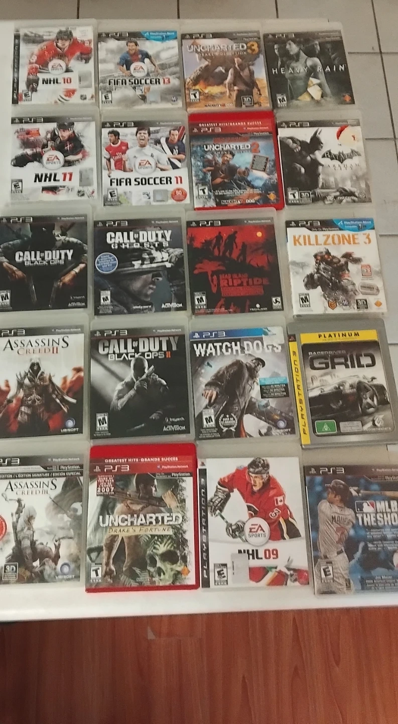 Bundle of assorted PlayStation 3 video games. Titles include Assassin's Creed series, Uncharted series, Call of Duty series, MLB The Show, NHL series, and more. All discs and cases appear to be in good condition. Perfect for any PS3 gamer!