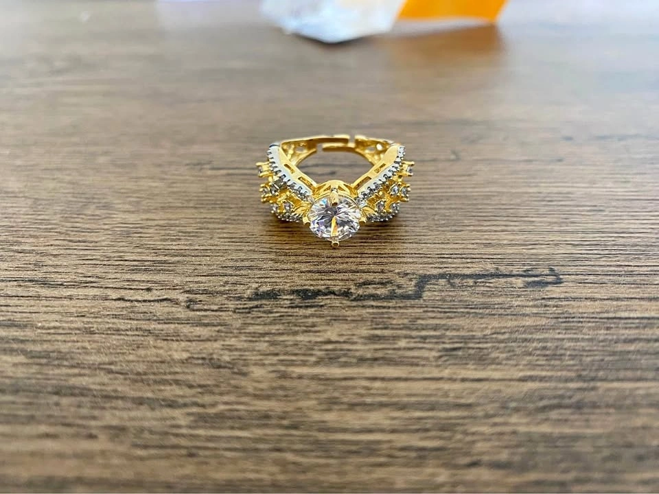 Adjustable gold color ring with clear stone